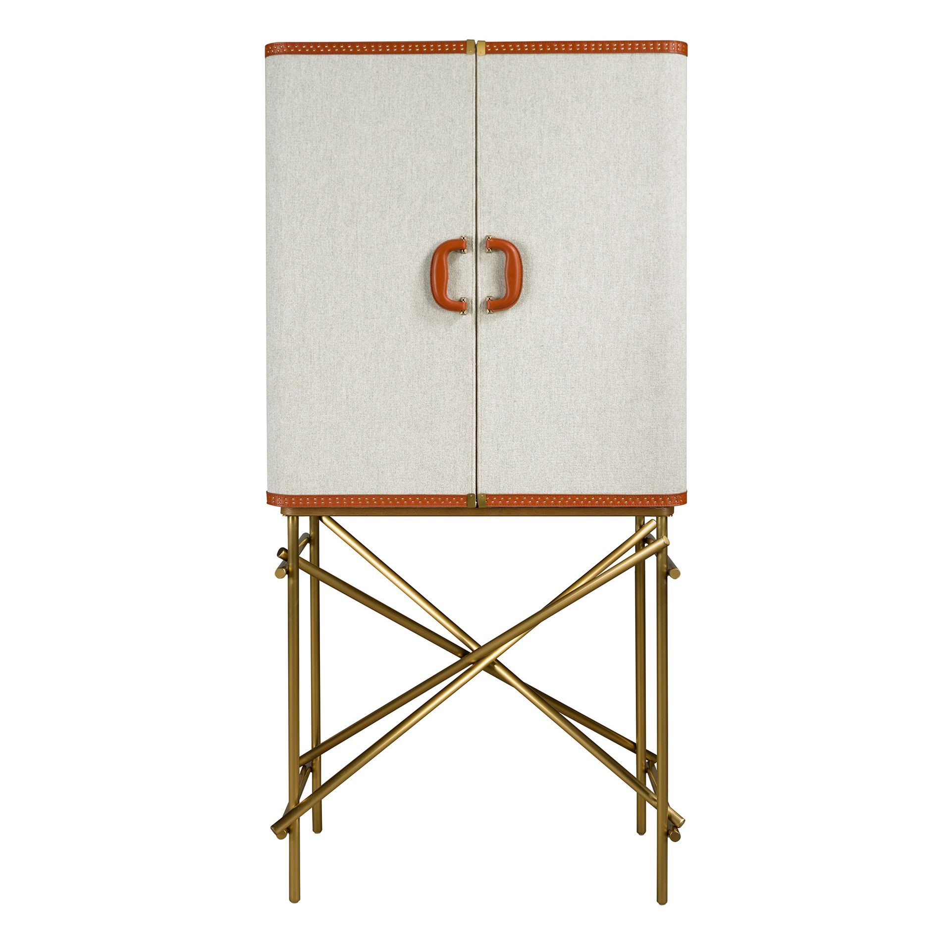 Aparador alto tela, nogal y acero pulido dorado modelo 3272 Angel Cerdá S.L.Aparador alto de diseño moderno con estructura de madera chapada en nogal natural tapizada en tela color y unas originales patas de acero inoxidable pulido en color dorado. Su original detalle en piel de origen vacuno aporta el toque de estilo ideal para tu salón. Cuenta con un amplio espacio de almacenaje con 2 puertas con sistema de apertura y cierre tirador de lengüeta. Medidas del producto: 82 x 53 x 169 cm.- El textil de este original aparador alto tapizado en tela gris, aportará el toque diferente y moderno que busca para su sala de estar o comedor. – El acero de sus patas, así como su diseño lineal, permite que encaje en cualquier espacio de su hogar. – Por su diseño de líneas rectas, aportará un aire de calma y calidez a cualquier estancia. – Gracias a sus baldas de madera, podrá disfrutar de un amplio espacio para guardar su vajilla o menaje de mesa. – Si lo que busca es un hogar tranquilo y relajado, este mueble auxiliar le ayudará a mantener el orden gracias a su gran espacio de almacenaje. – En su interior, cuenta con un espacio para sujetar las copas, ideal para evitar roturas o choques entre el cristal.