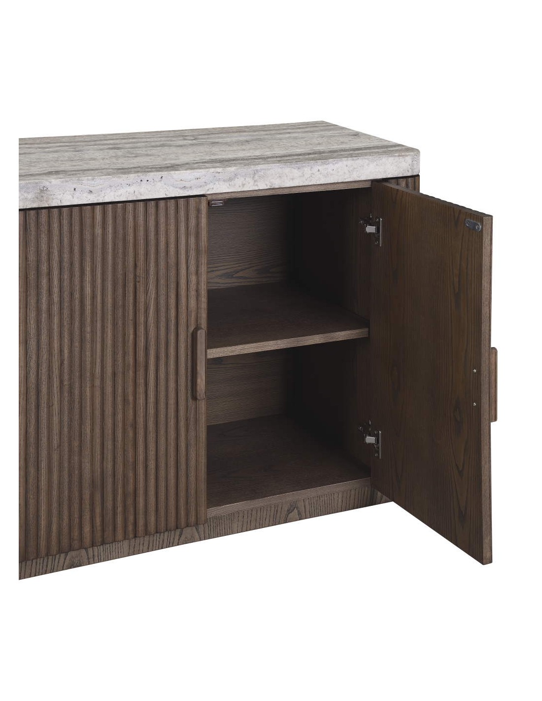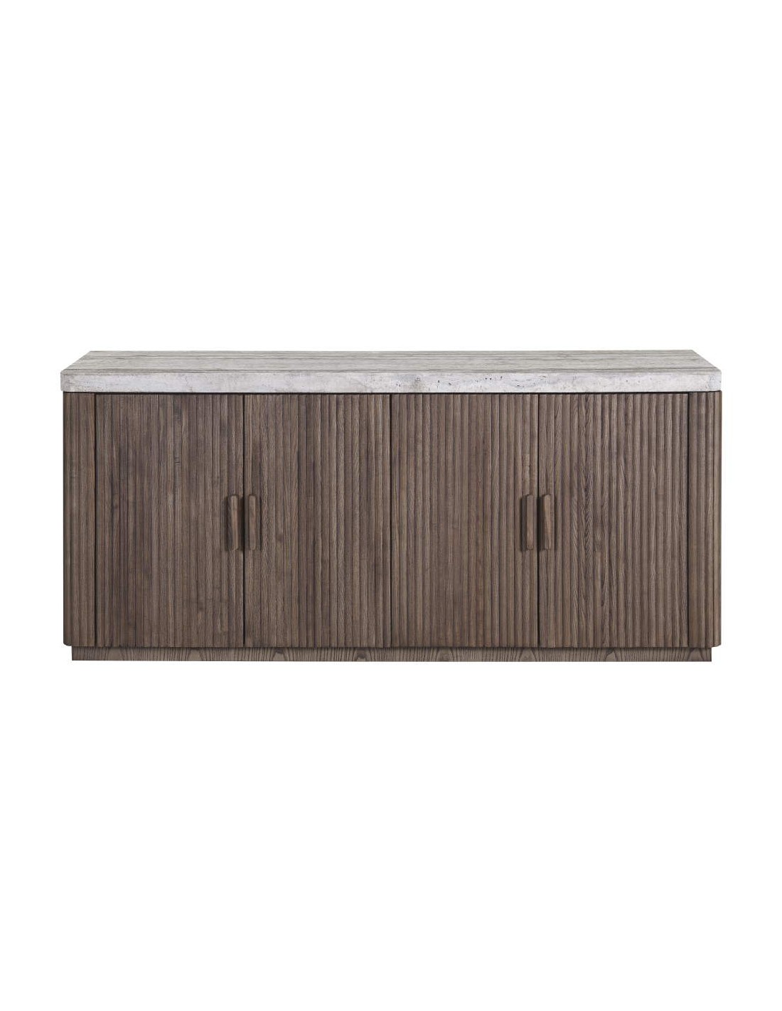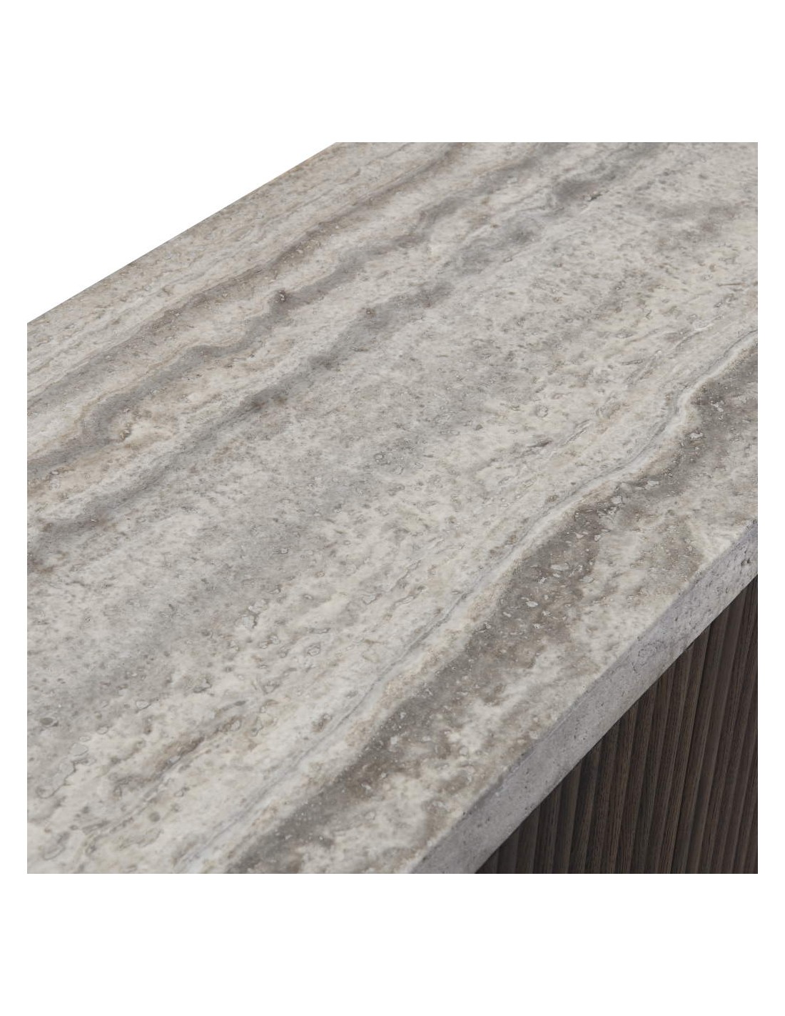 Aparador de palillería en color café combinado con travertino gris mate. Medidas: 170x45x75