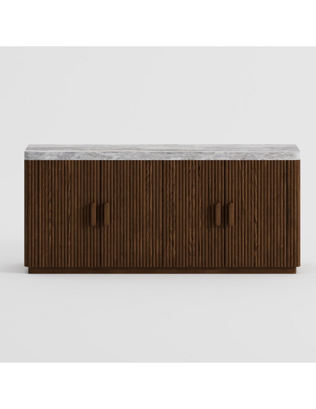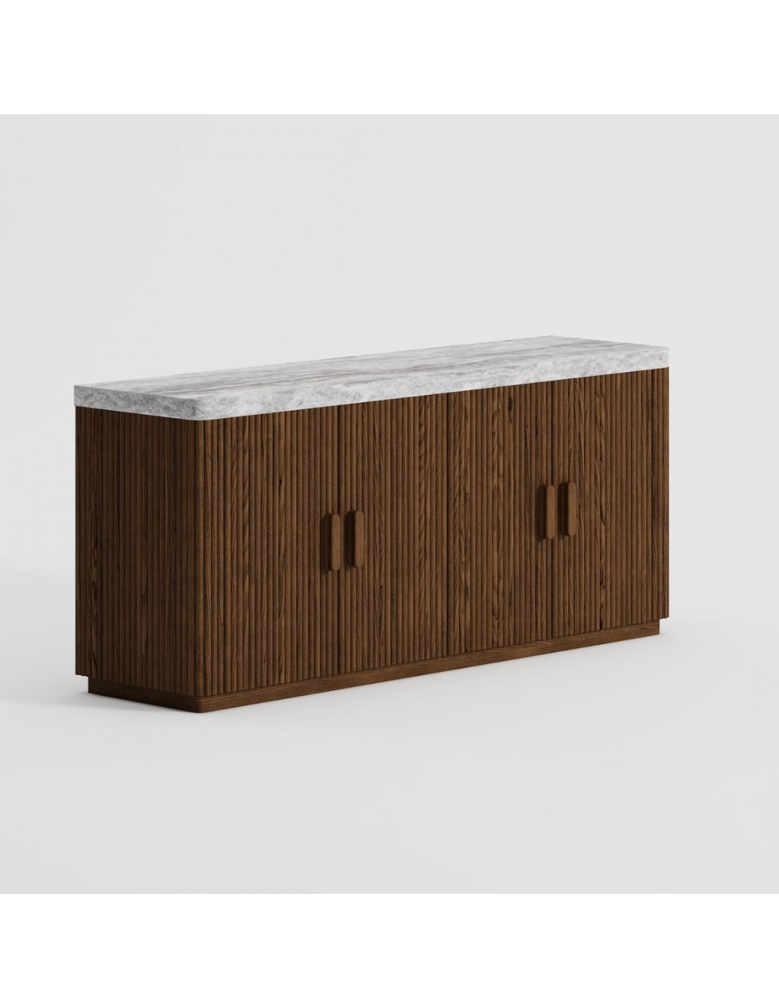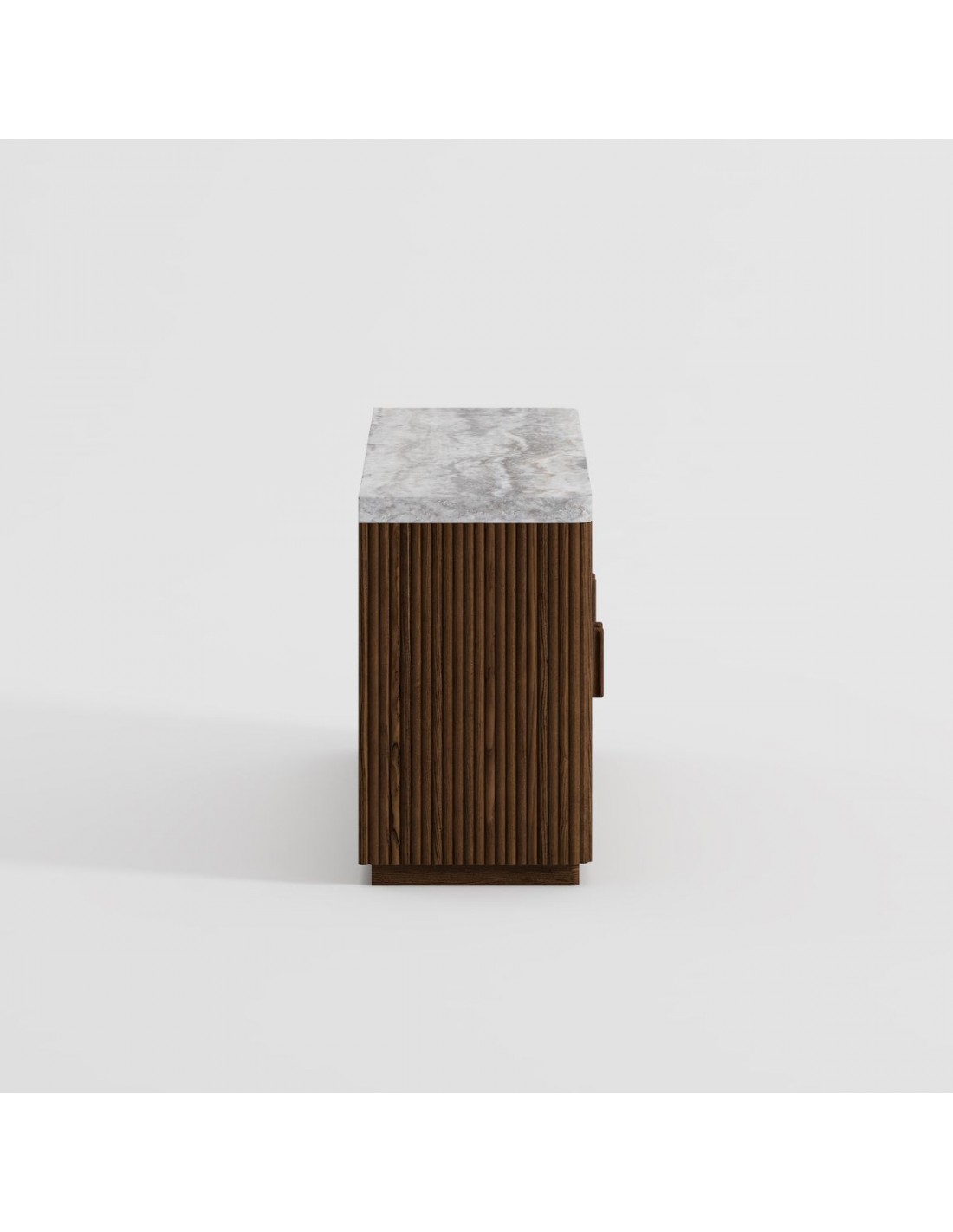 Aparador de palillería en color café combinado con travertino gris mate. Medidas: 170x45x75