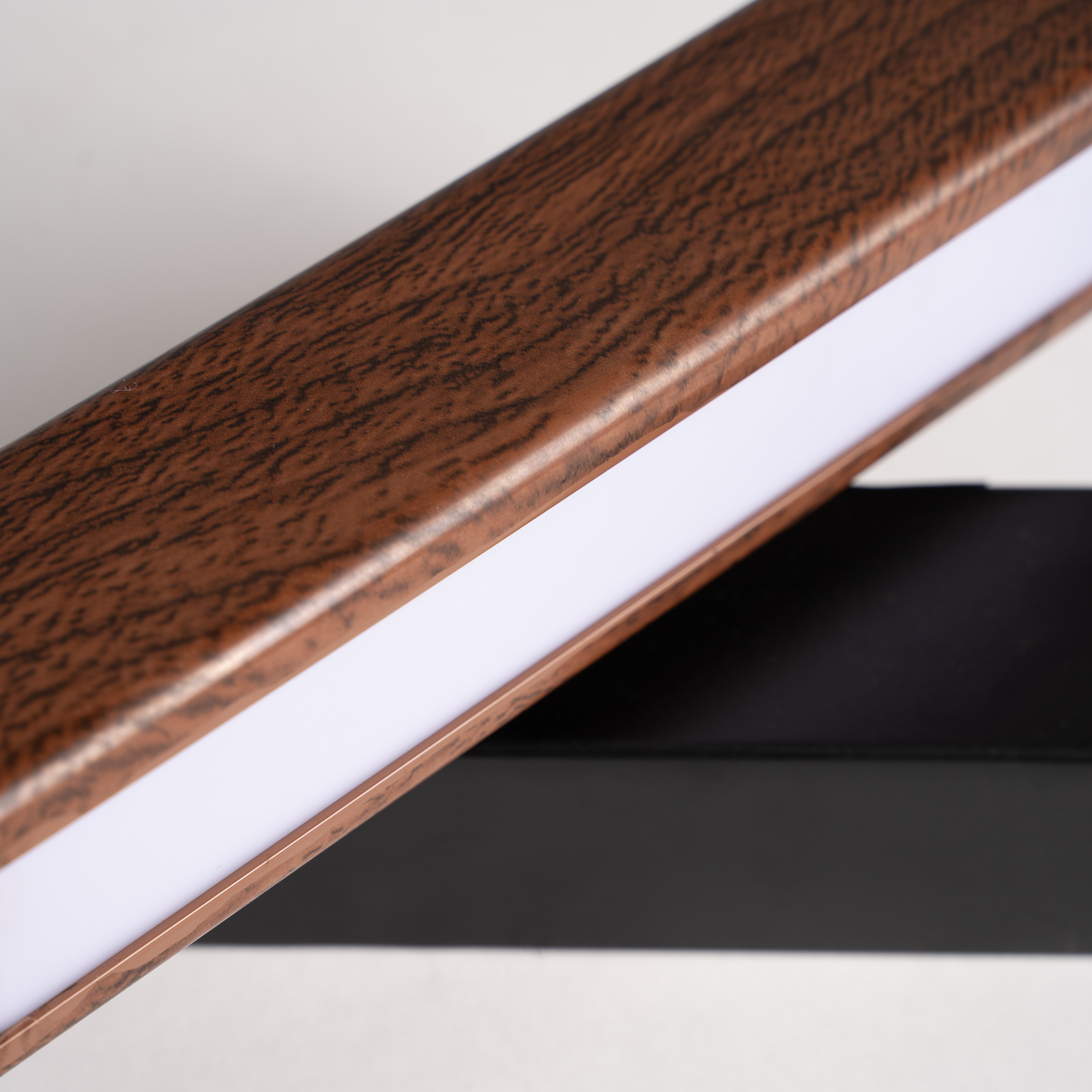Aplique Ariel de estilo contemporáneo fabricado en aluminio en color marrón combinado con acero en color negro y acrílico en color blanco roto.