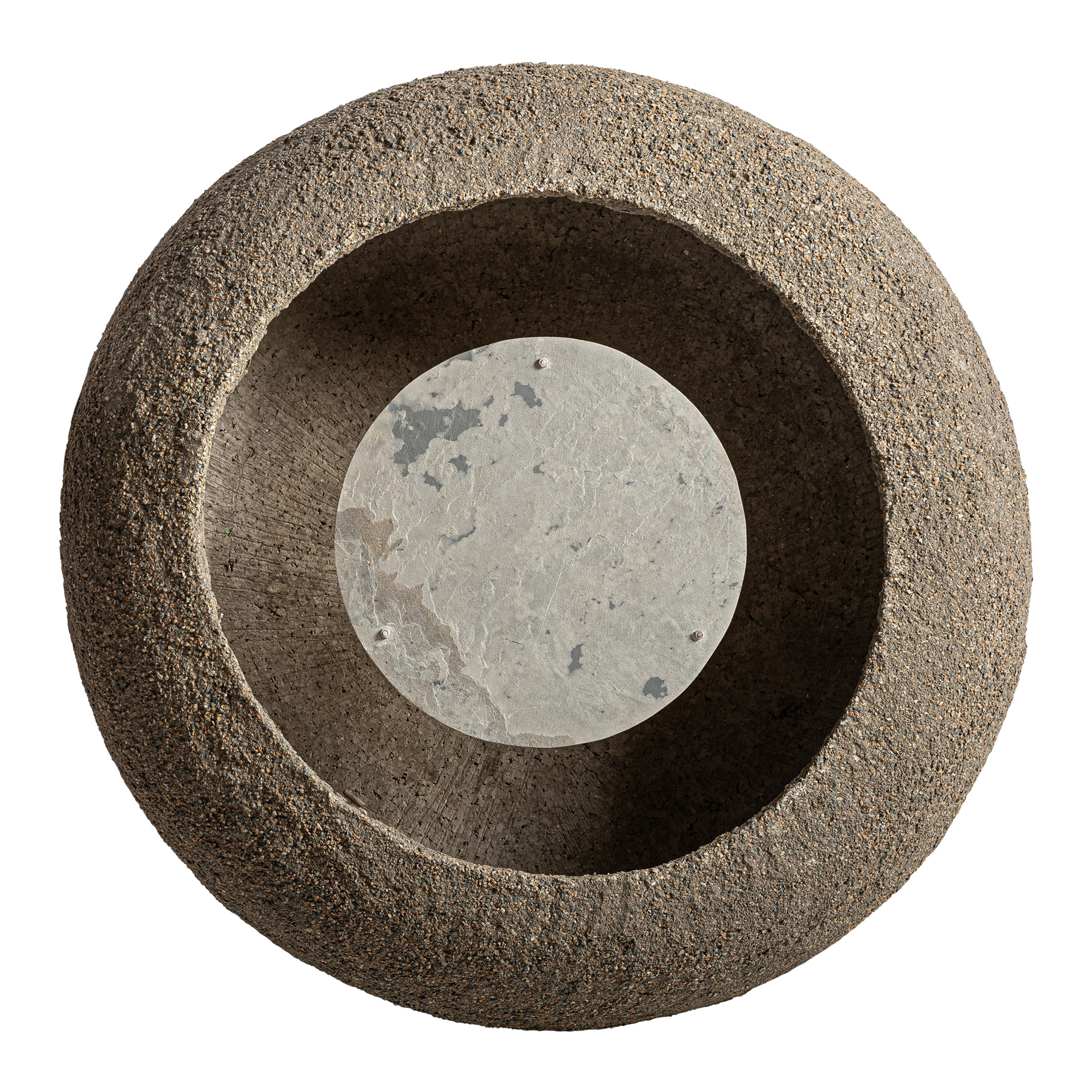 Aplique Wisha de estilo contemporáneo fabricado en cemento en color gris combinado con papel maché en color gris y piedra en color beige.