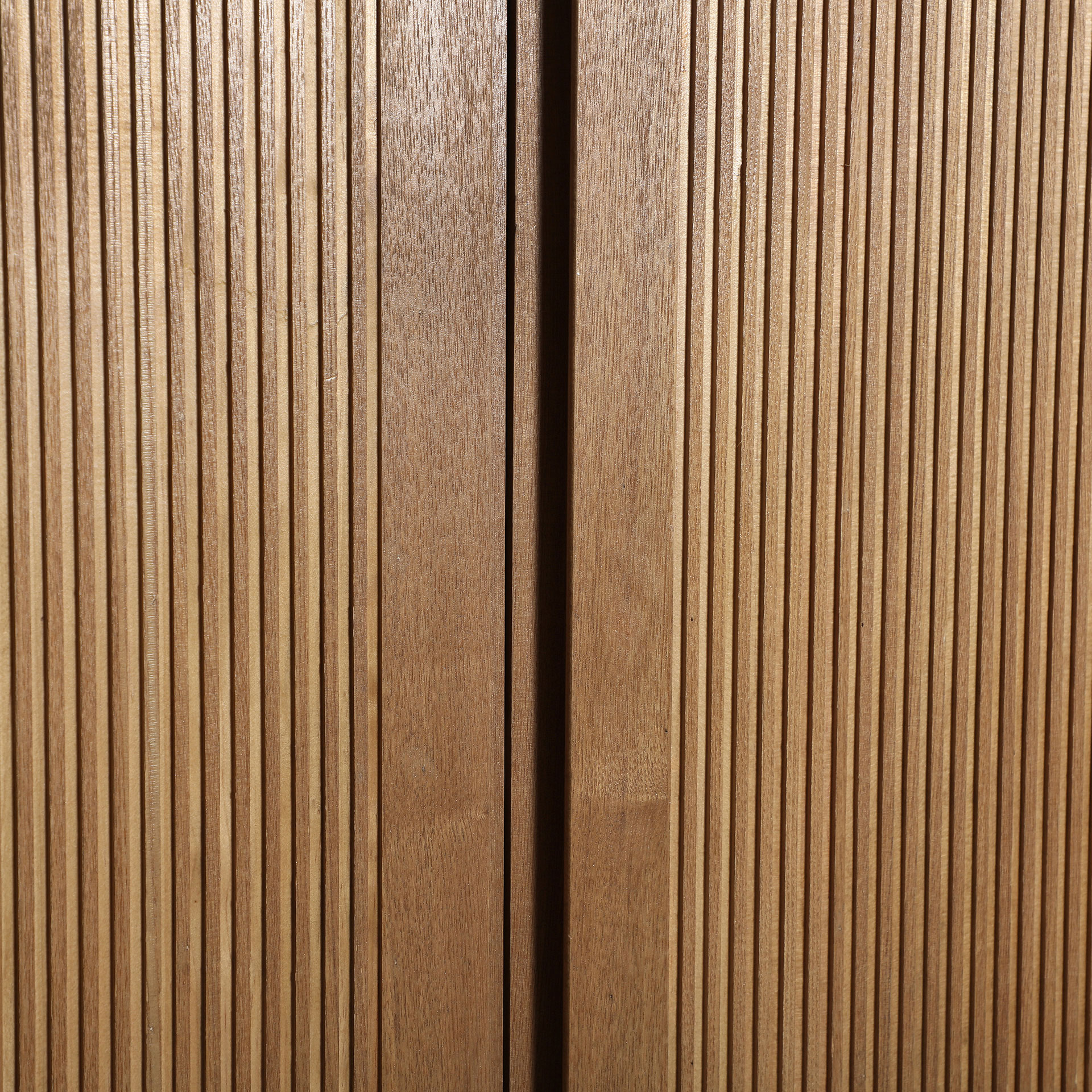 Armario Copenhague de estilo minimalista, fabricado en madera de fresno en color marrón, combinado con madera dm en color marrón.