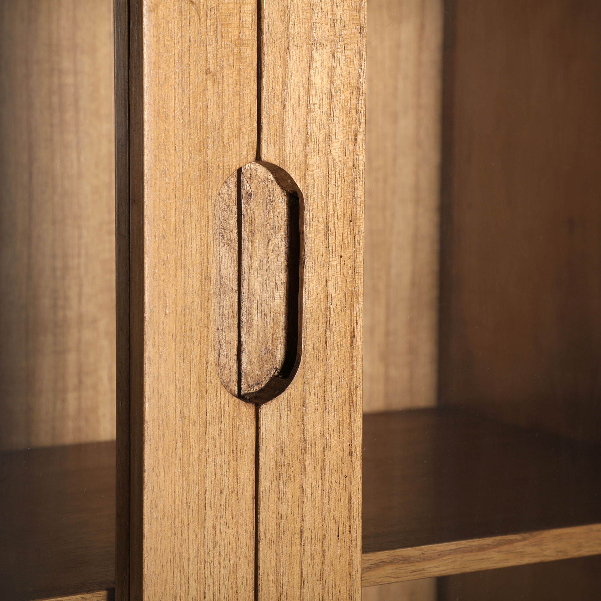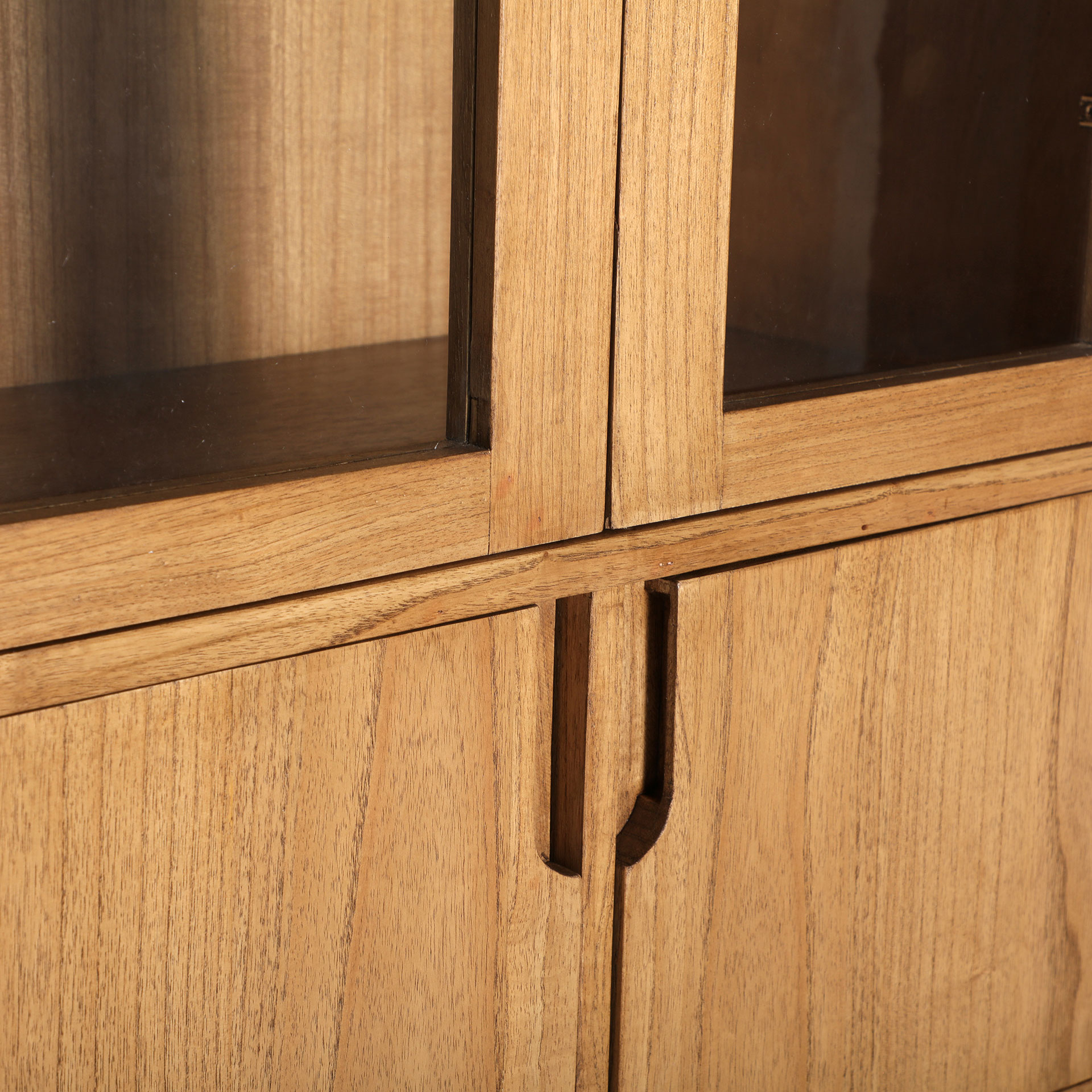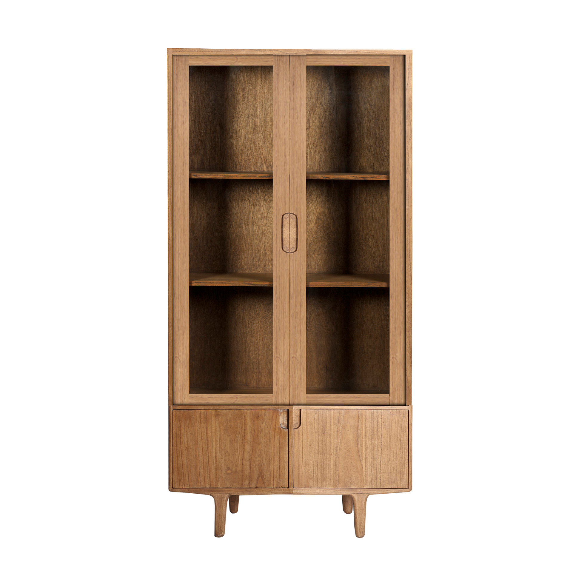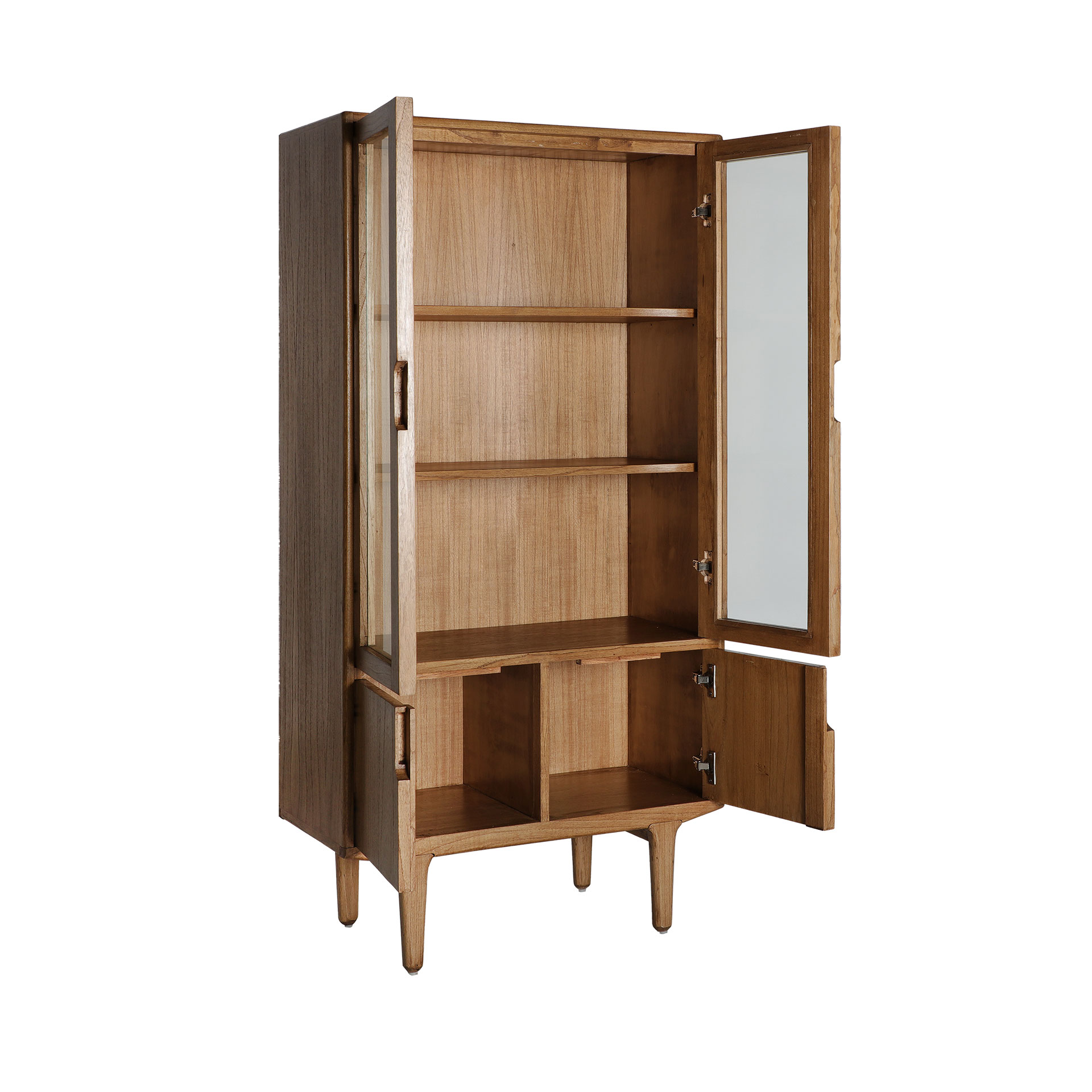 Armario rectangular kamenz de estilo nórdico, fabricado en madera mindi en color marrón, combinado con madera contrachapada y cristal. Producto desmontable.
