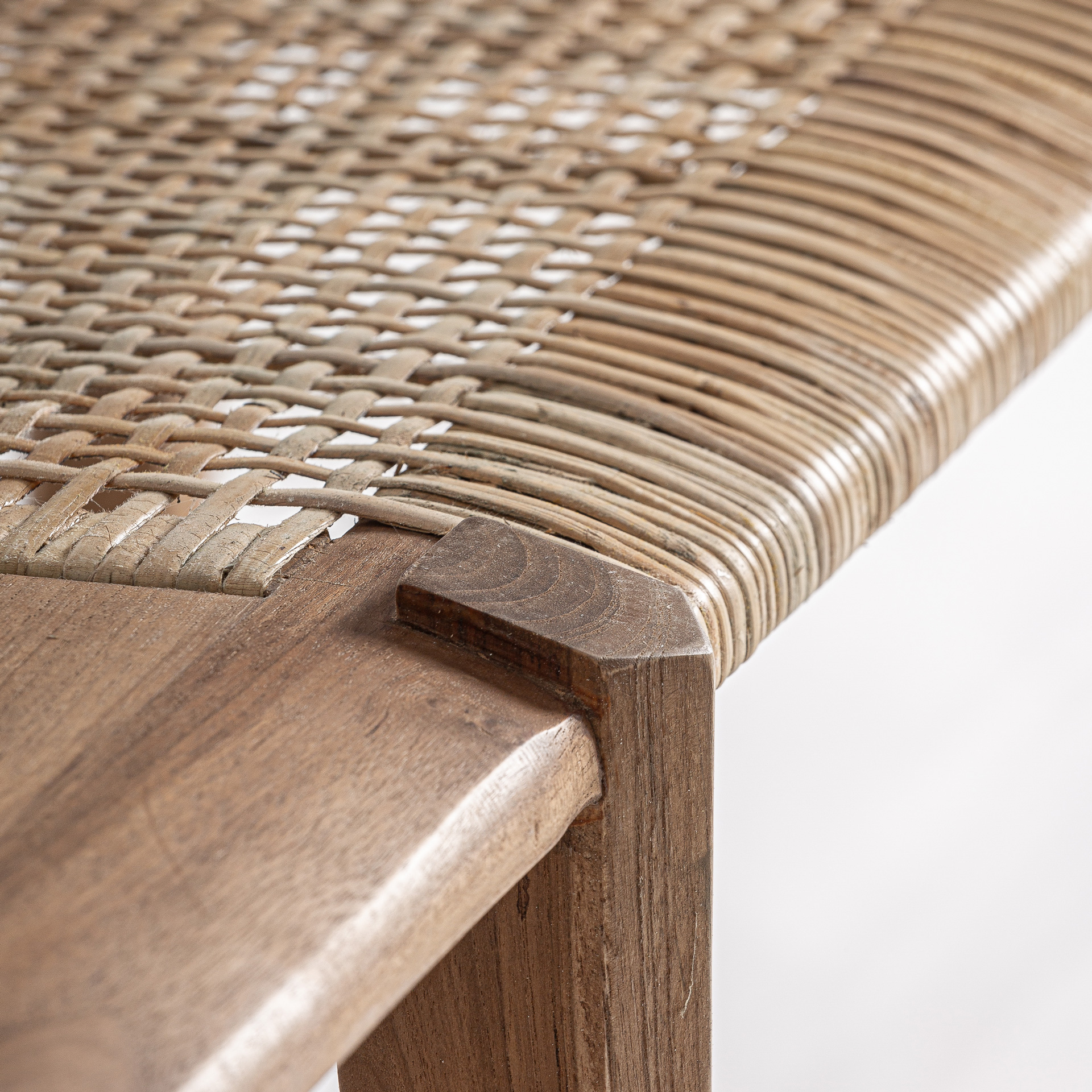 Banco Hallen de estilo boho fabricado en madera de teka en color marrón.