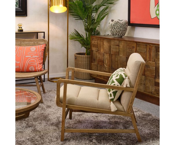 ¡No te resistas a este fabuloso sillón! El modelo 6027-OAK es un sillón tapizado en lino de color beige y tiene la estructura en madera de roble. Es la pieza ideal para crear cálidos ambientes de estilo mediterráneo.
