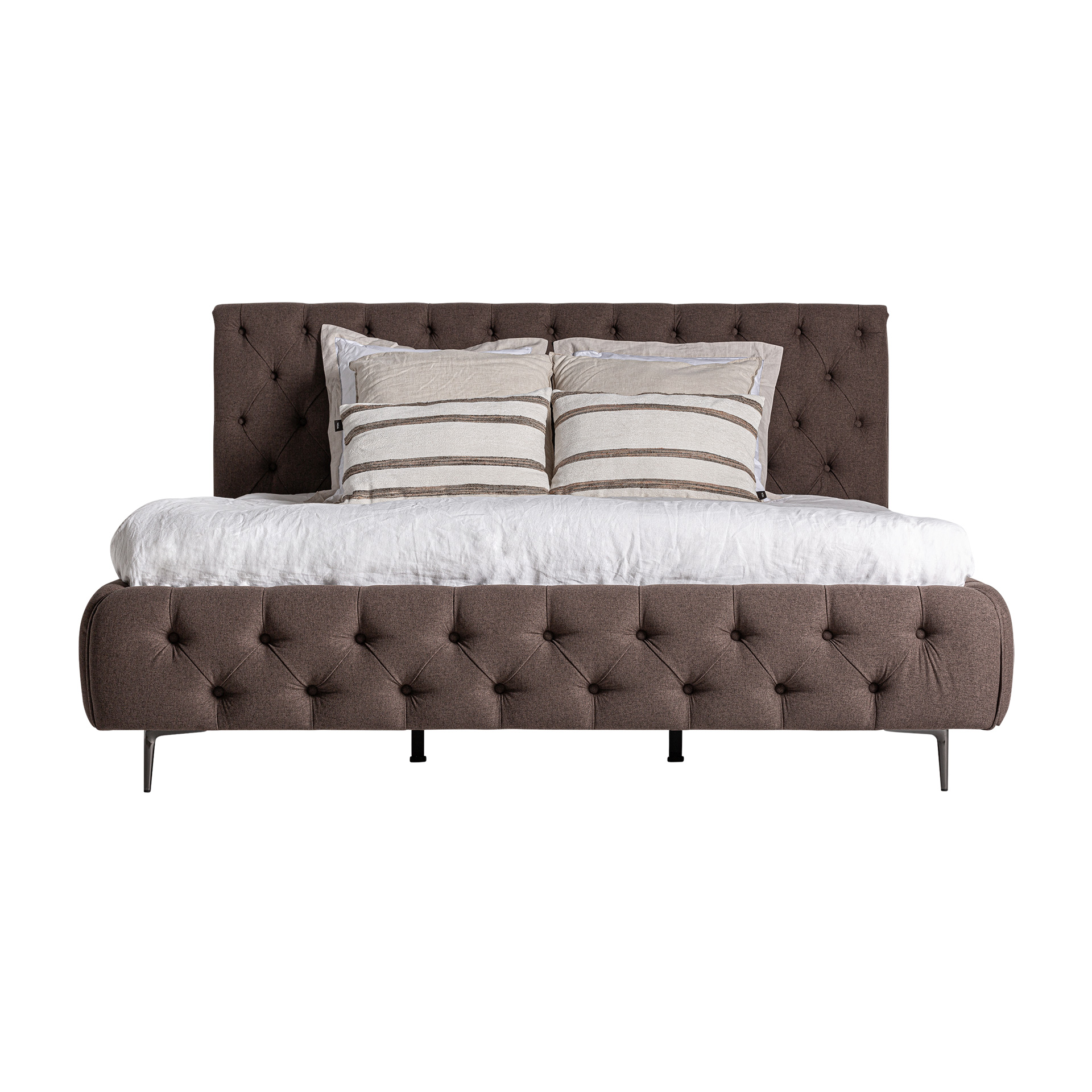 Cama Oslo de estilo provenzal fabricado en tela en color marrón combinado con madera de pino en color marrón y madera mahogani.