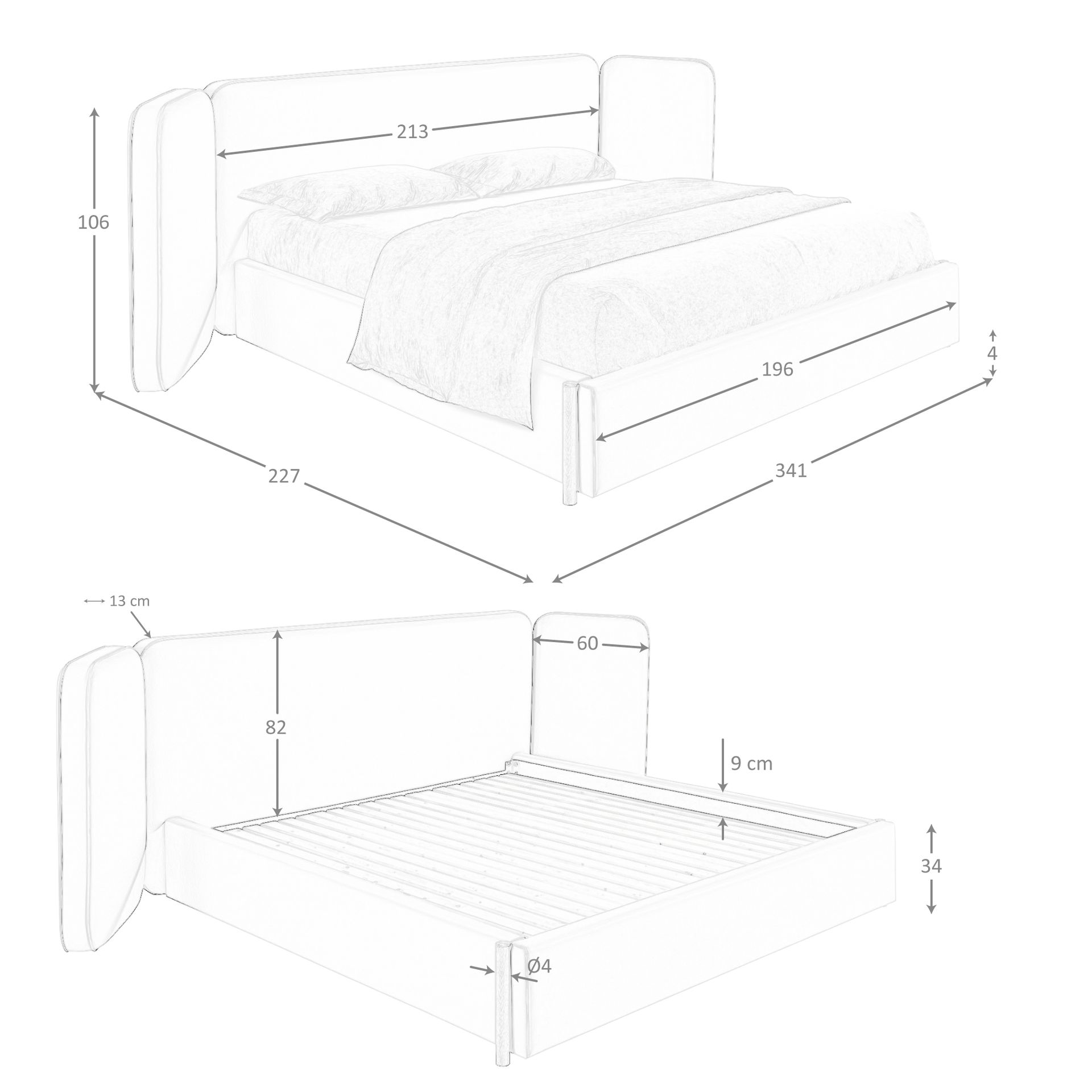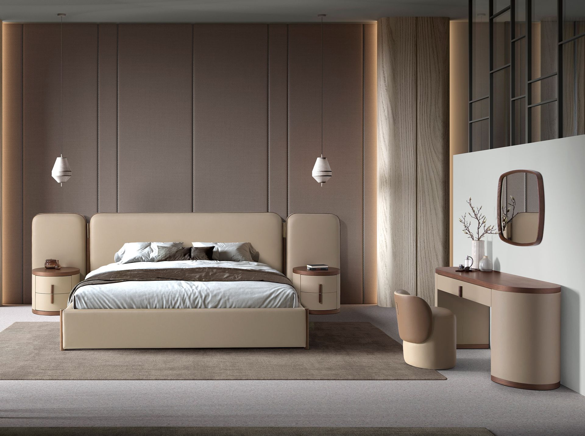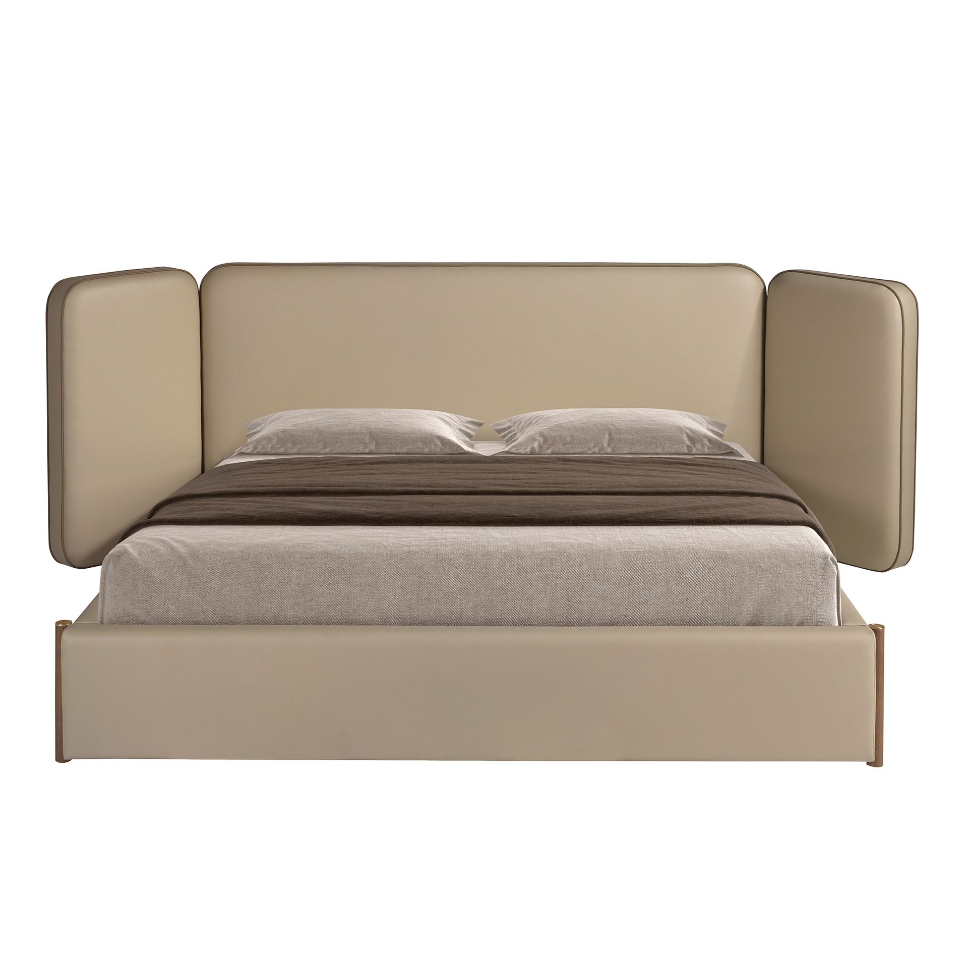 Cama polipiel color visón modelo 7218 Angel Cerdá S.L.Cama de matrimonio de diseño moderno con un original cabecero y estructura fabricada en polipiel color visón, y patas de madera en color nogal. Una pieza clave para su dormitorio con la que aportará un estilo elegante y acogedor.Incluye un confortable somier multilamas fabricado en madera de pino.Cama compatible con colchón de 180 x 200 cm.Medidas del producto: 341 x 227 x 106 cm.- El tapizado en polipiel de esta cama se convertirá en el protagonista de su dormitorio, aportando calidez y vanguardia a su zona de descanso. – Su diseño elegante y moderno, la convierte en un mueble perfecto para cualquier tipo de dormitorio, creando un ambiente perfecto para relajarse y descansar. – Todas nuestras camas están fabricadas con materiales de la más alta calidad, y con una estructura interna de madera de pino natural. – Cama compatible con colchón de 180×200 cm. – Su espectacular cabecero con paneles laterales abatibles ofrece un plus de confort y funcionalidad, creando un ambiente más íntimo y sofisticado donde el diseño y el bienestar se unen a la perfección.