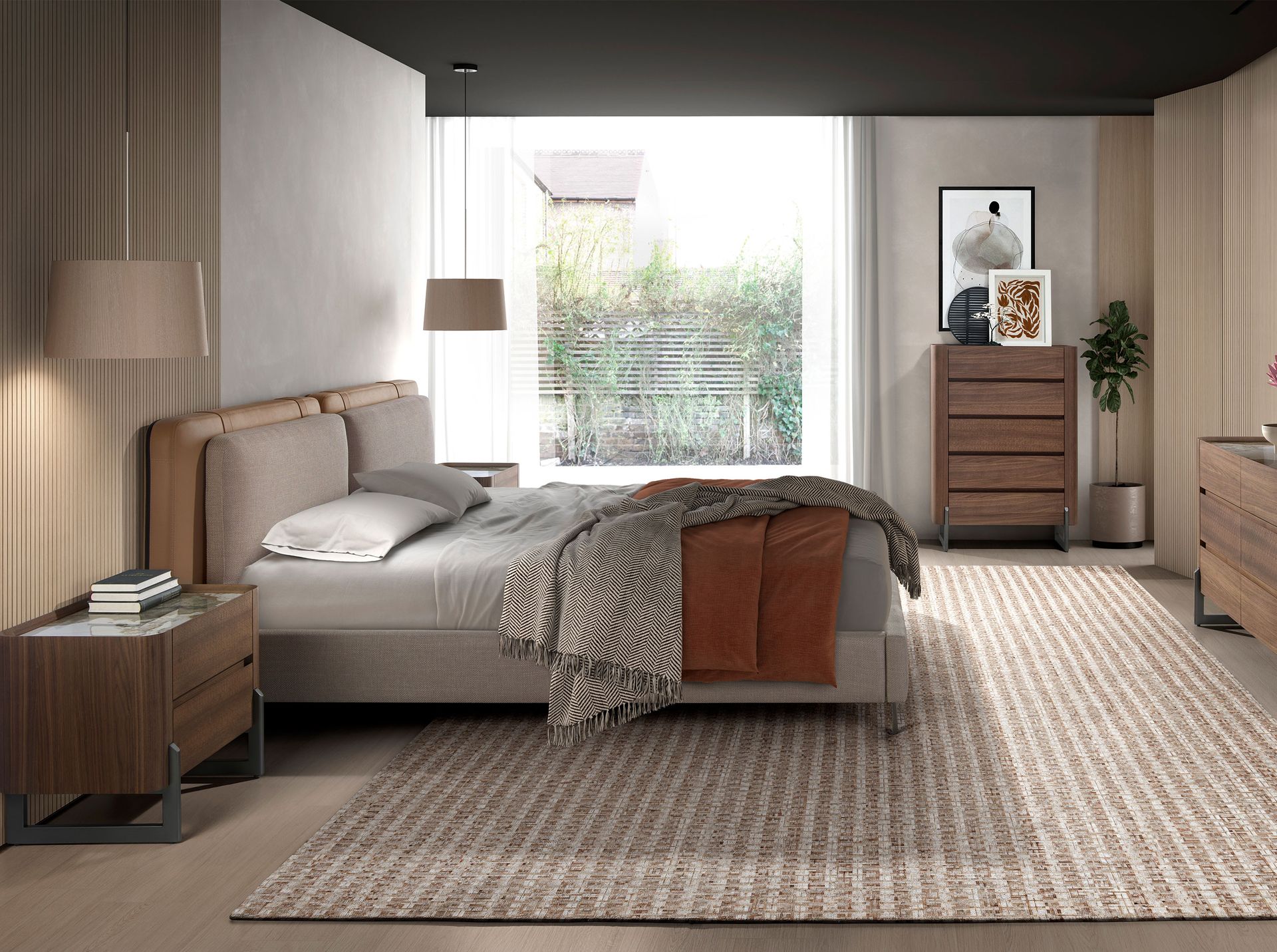 Chifonier nogal, acero visón metal y tapa de mármol porcelánico