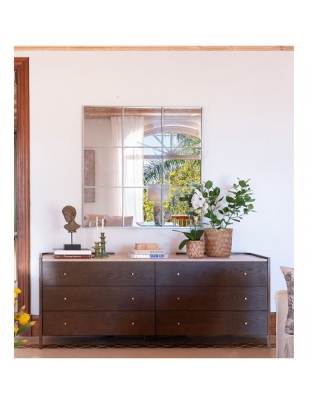 Cómoda acabada en roble marrón oscuro con 6 cajones