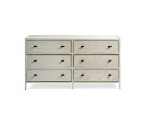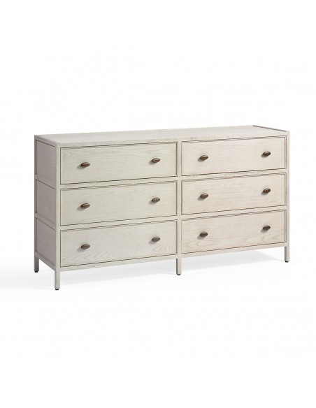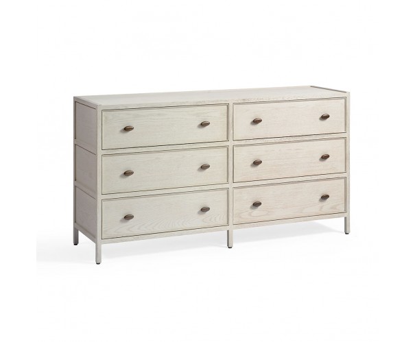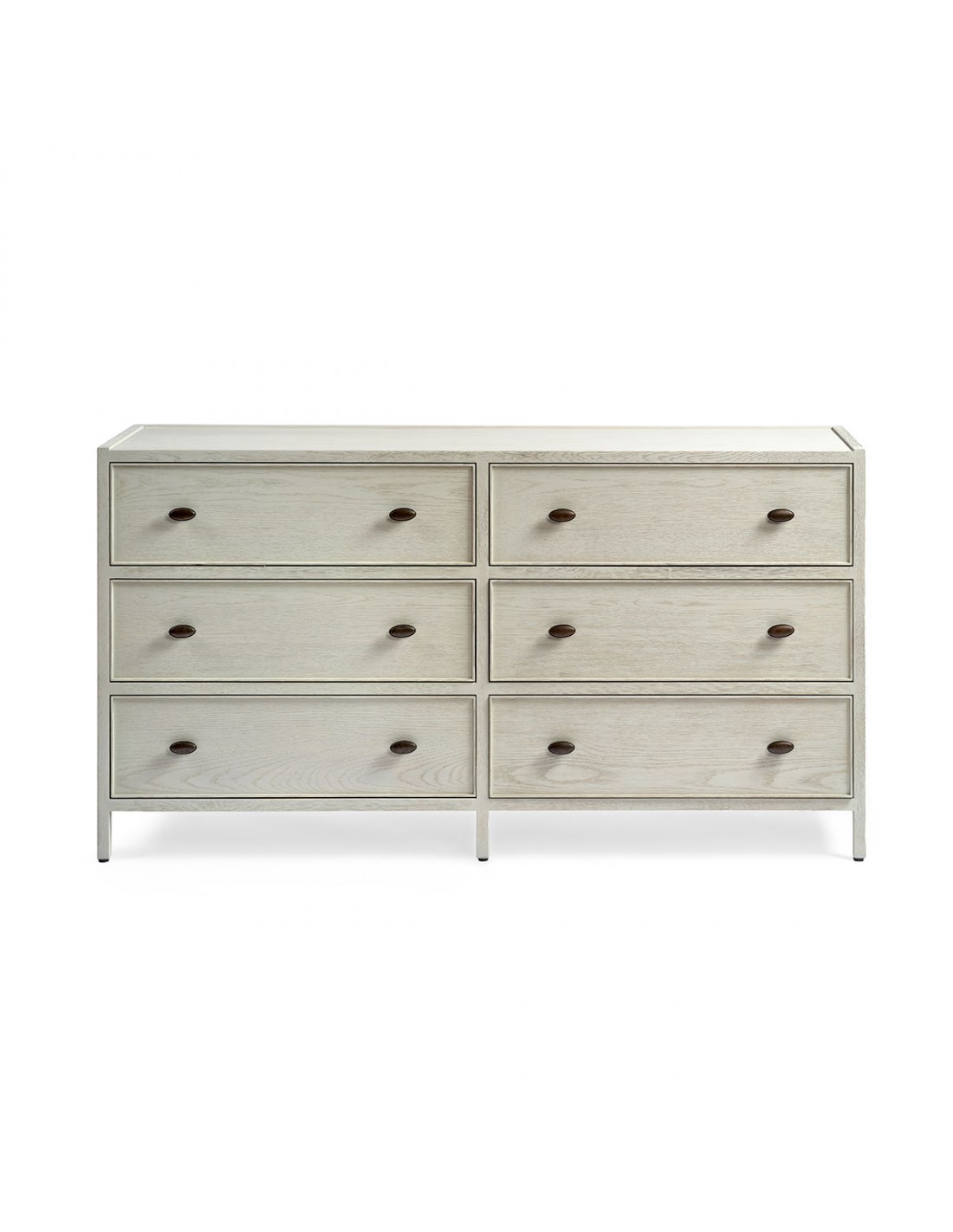 Cómoda alta de roble blanco grisáceo 6 cajones tirador metal