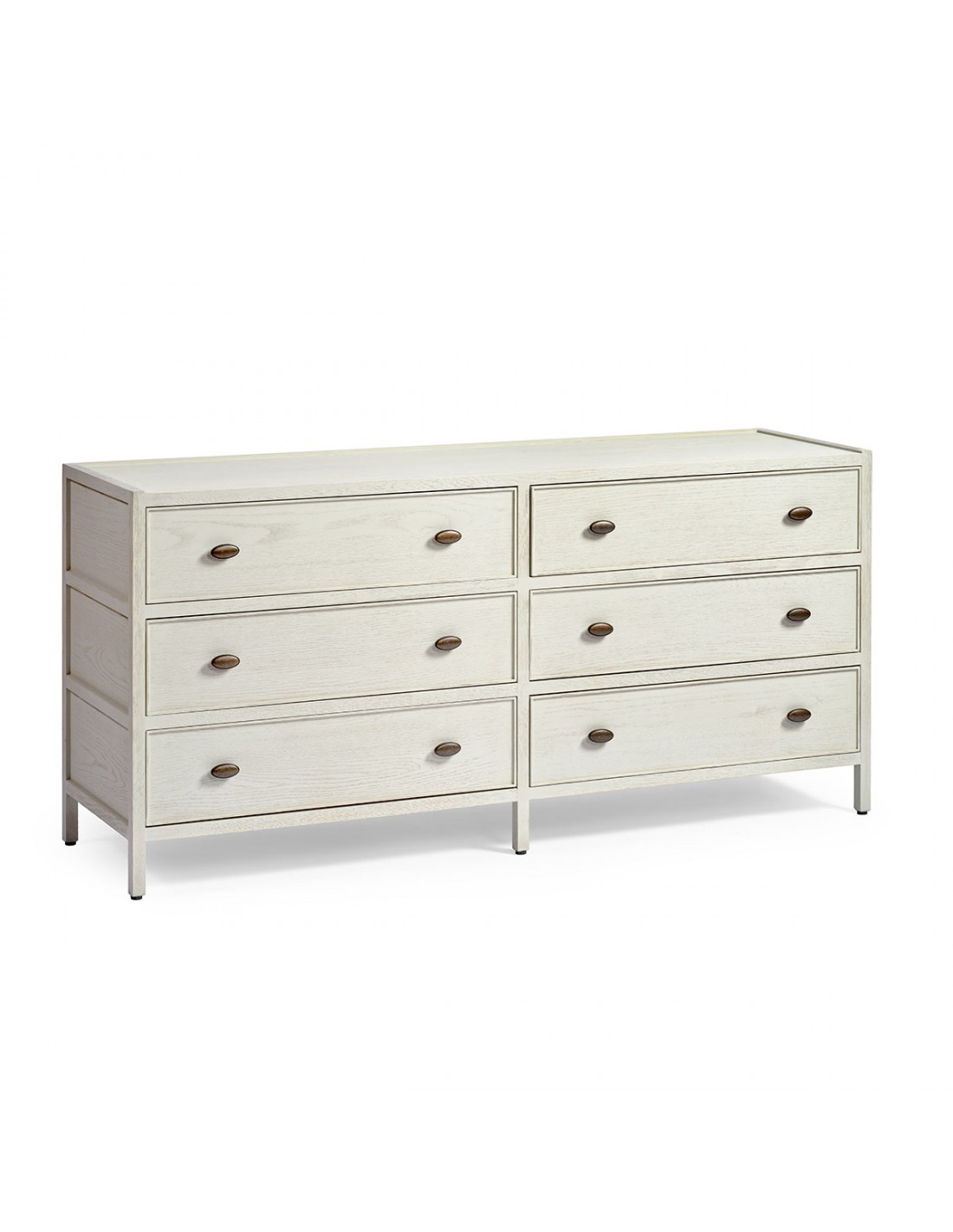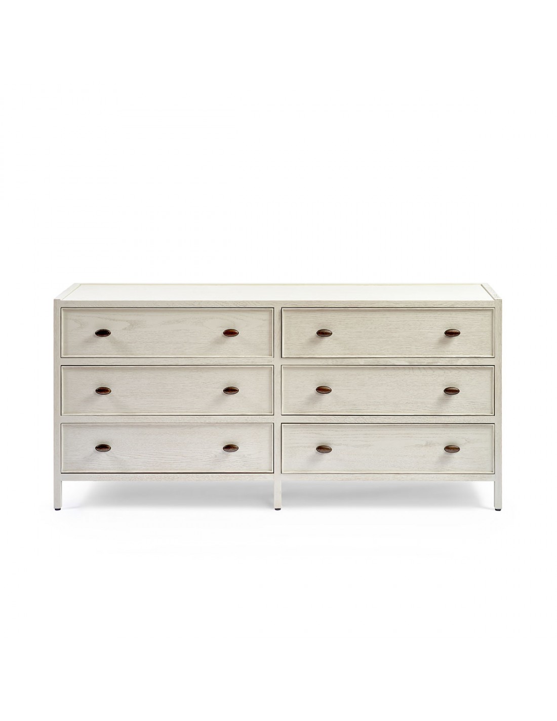 Cómoda de roble blanco grisáceo 6 cajones tirador metal