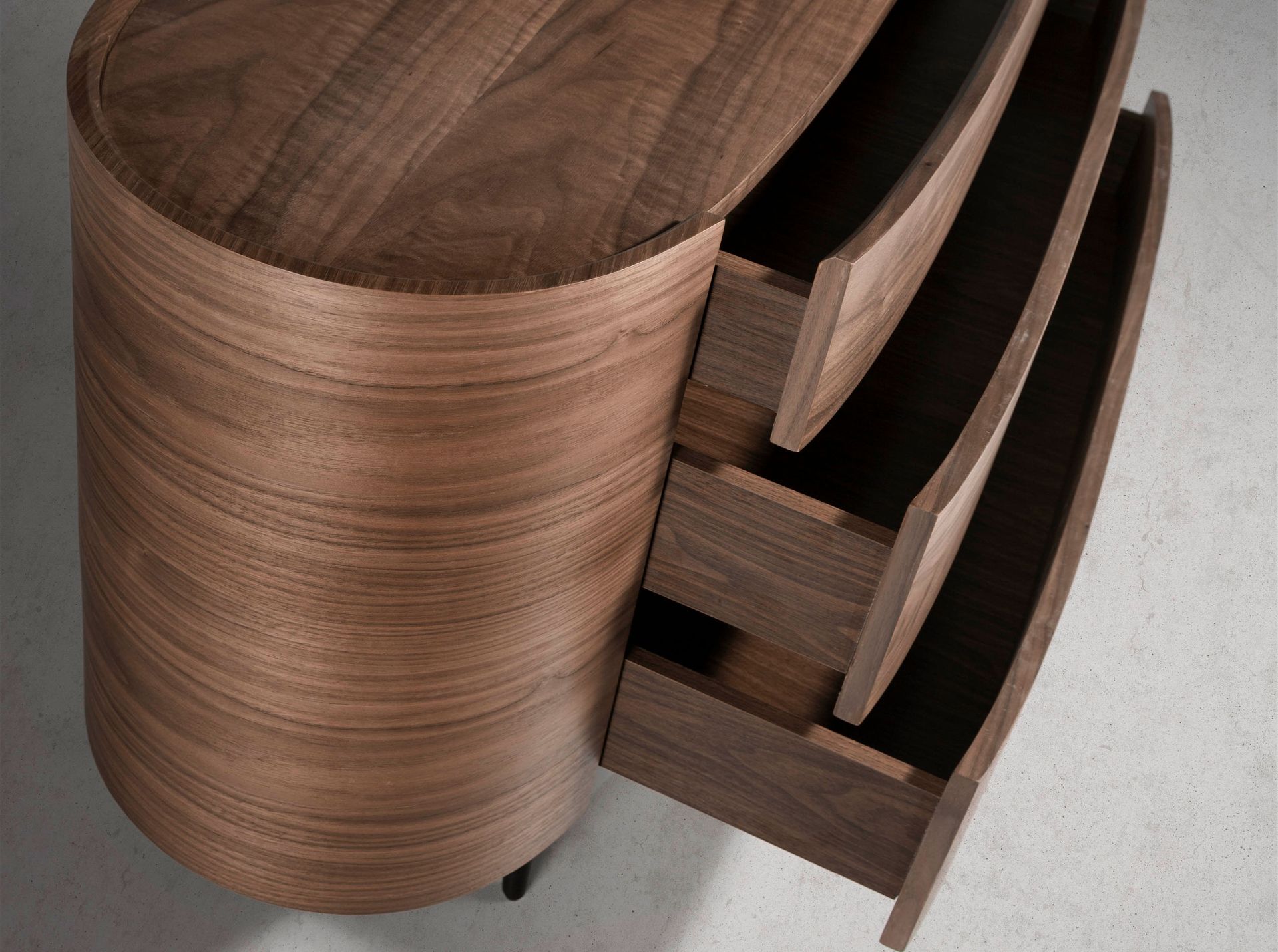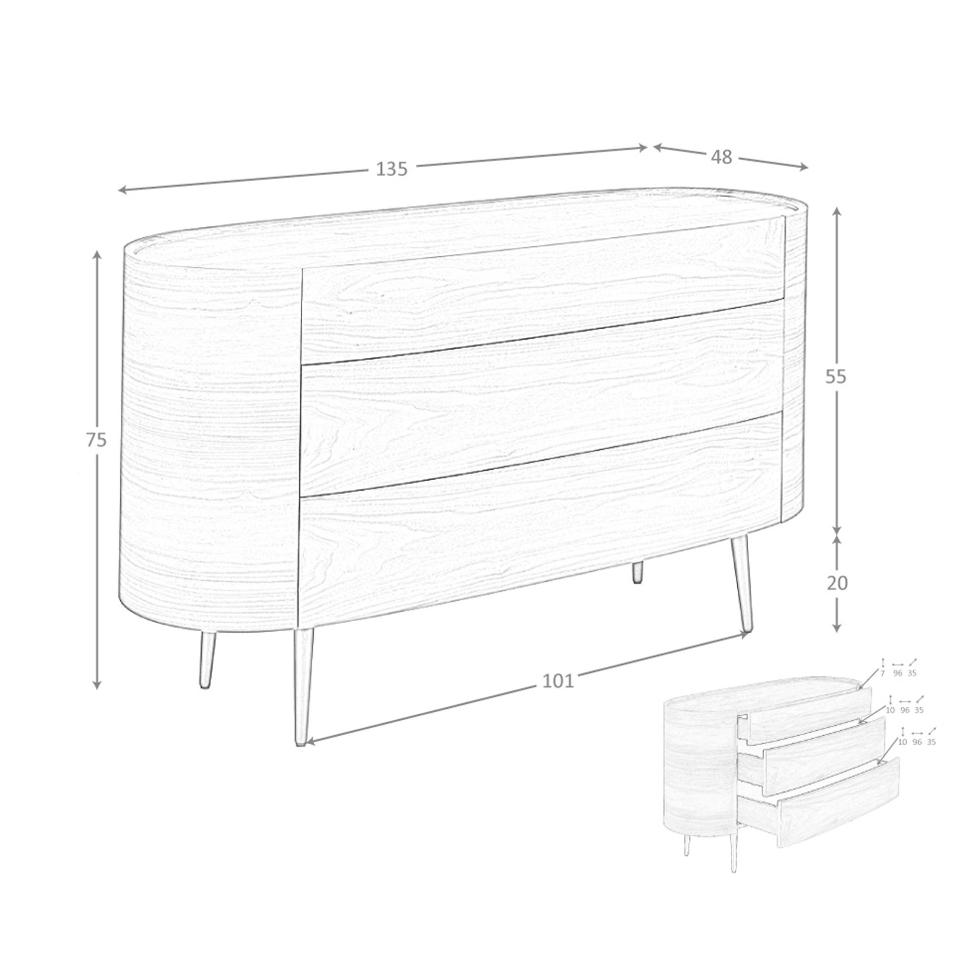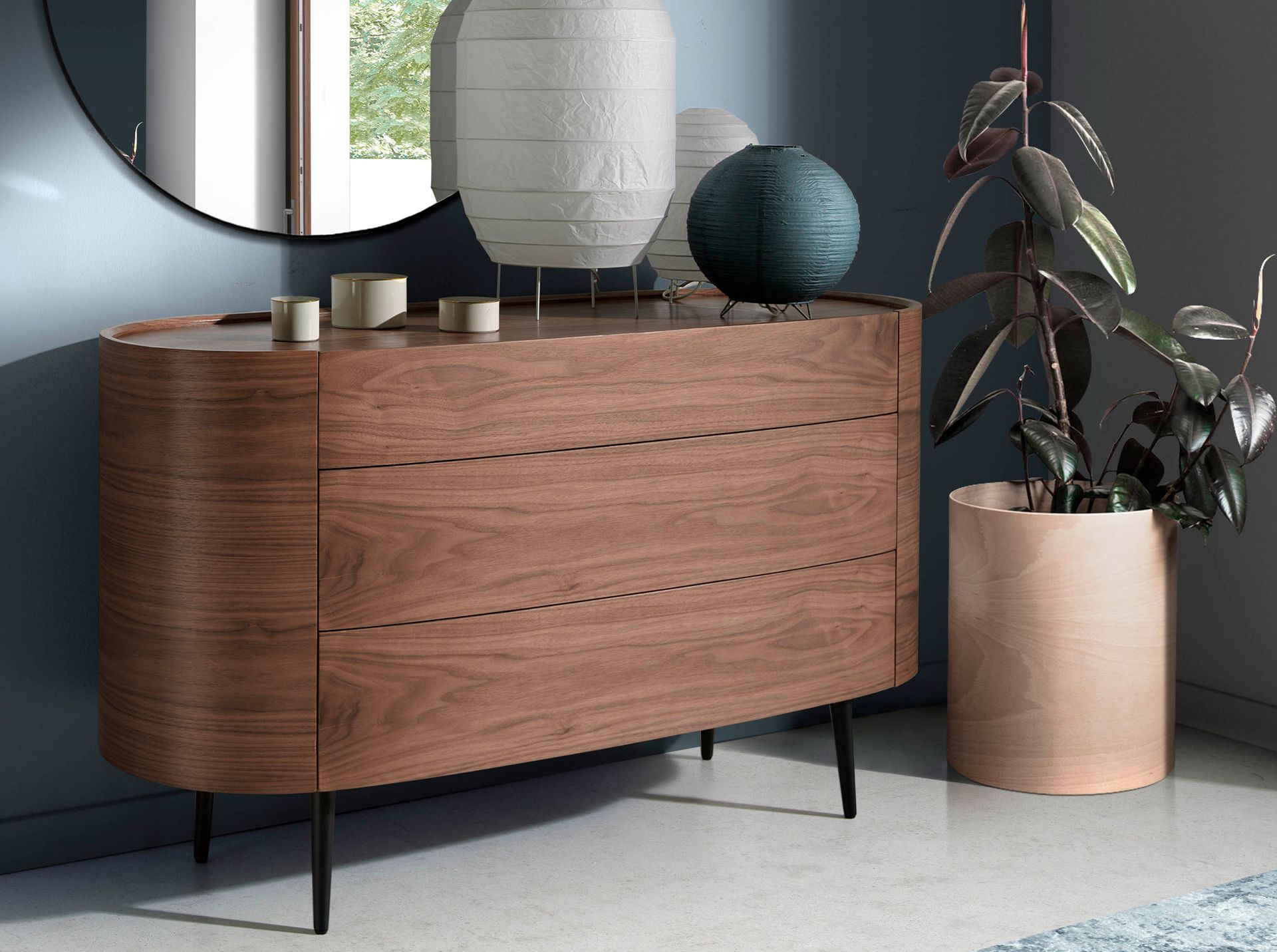Cómoda nogal y acero negro modelo 7075 Angel Cerdá S.L.Cómoda de diseño moderno con estructura de madera chapada en nogal natural y unas originales patas de acero inoxidable color negro. Cuenta con un amplio espacio de almacenaje con 3 cajones con sistema de apertura uñero y cierre soft-closing. Medidas del producto: Ø135 x 48 x 75 cm.- Una cómoda elegante y sofisticada de madera chapada en nogal natural de 0,5 mm de espesor con la que conseguirá el toque de modernidad y calidez que busca para su dormitorio. – Fiel a las últimas tendencias en decoración, gracias a sus patas en acero negro, conseguirá un ambiente con carácter, personalidad y de diseño moderno. – Versátil y funcional, su diseño permite que encaje en cualquier ambiente, convirtiéndose en un elemento clave de la decoración de su hogar. – Tanto por su tamaño como por su gran espacio de almacenaje es ideal para mantener todo en orden y en su sitio.