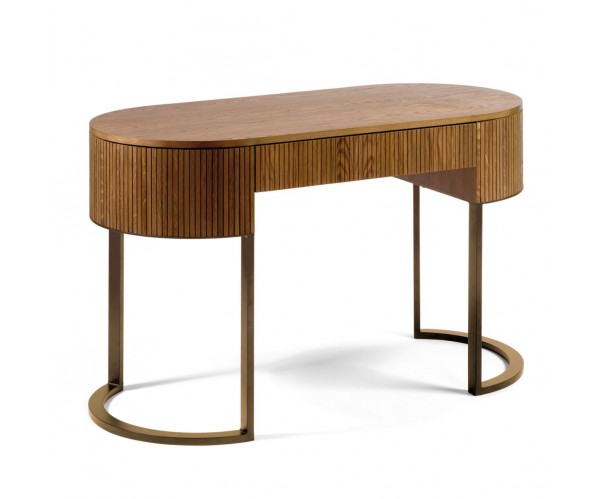 Consola con cajón roble natural efecto alistonado y metal dorado envejecido
