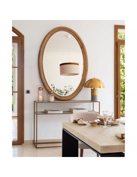 Consola de madera de roble en acabado blanco grisáceo con estructura metálica en dorado.