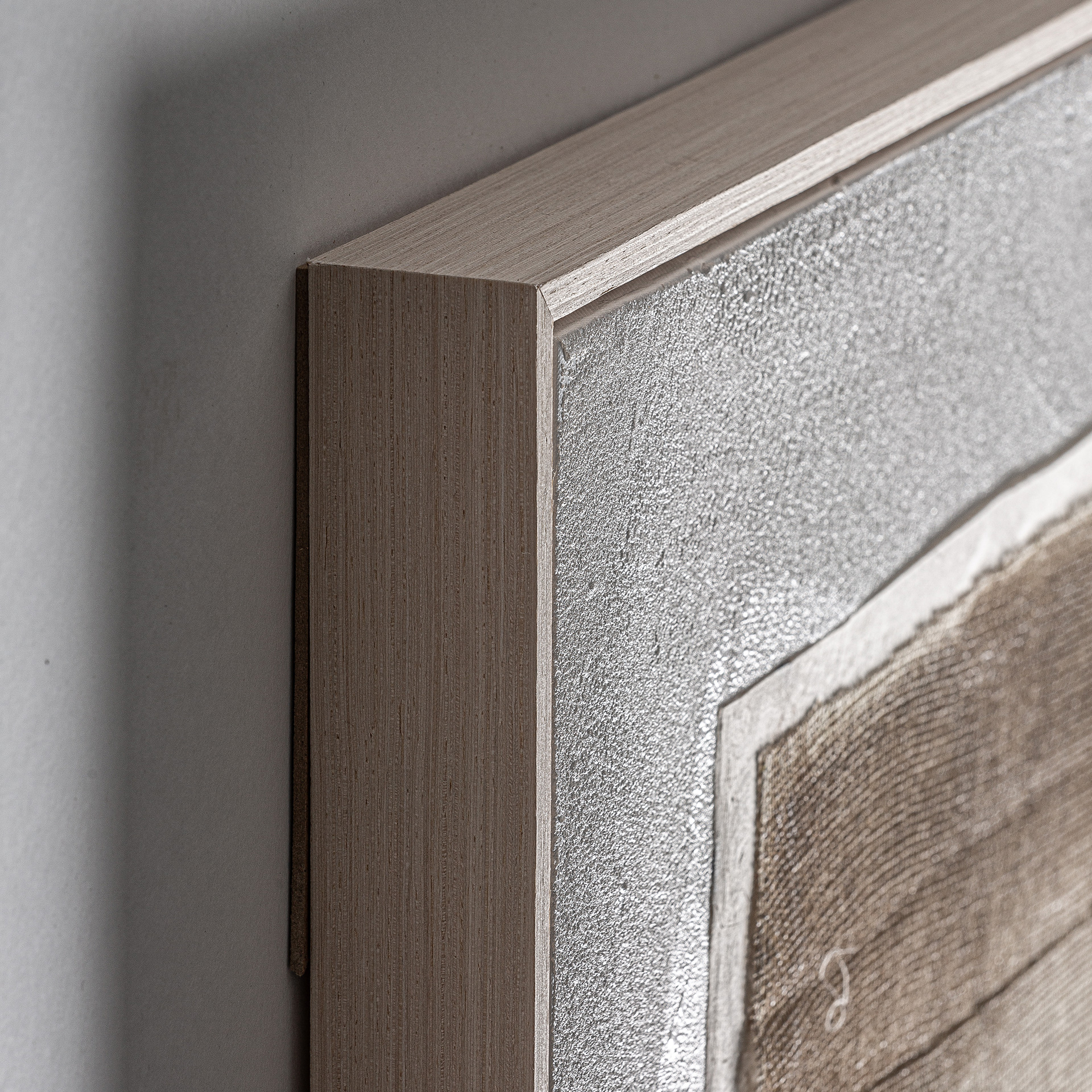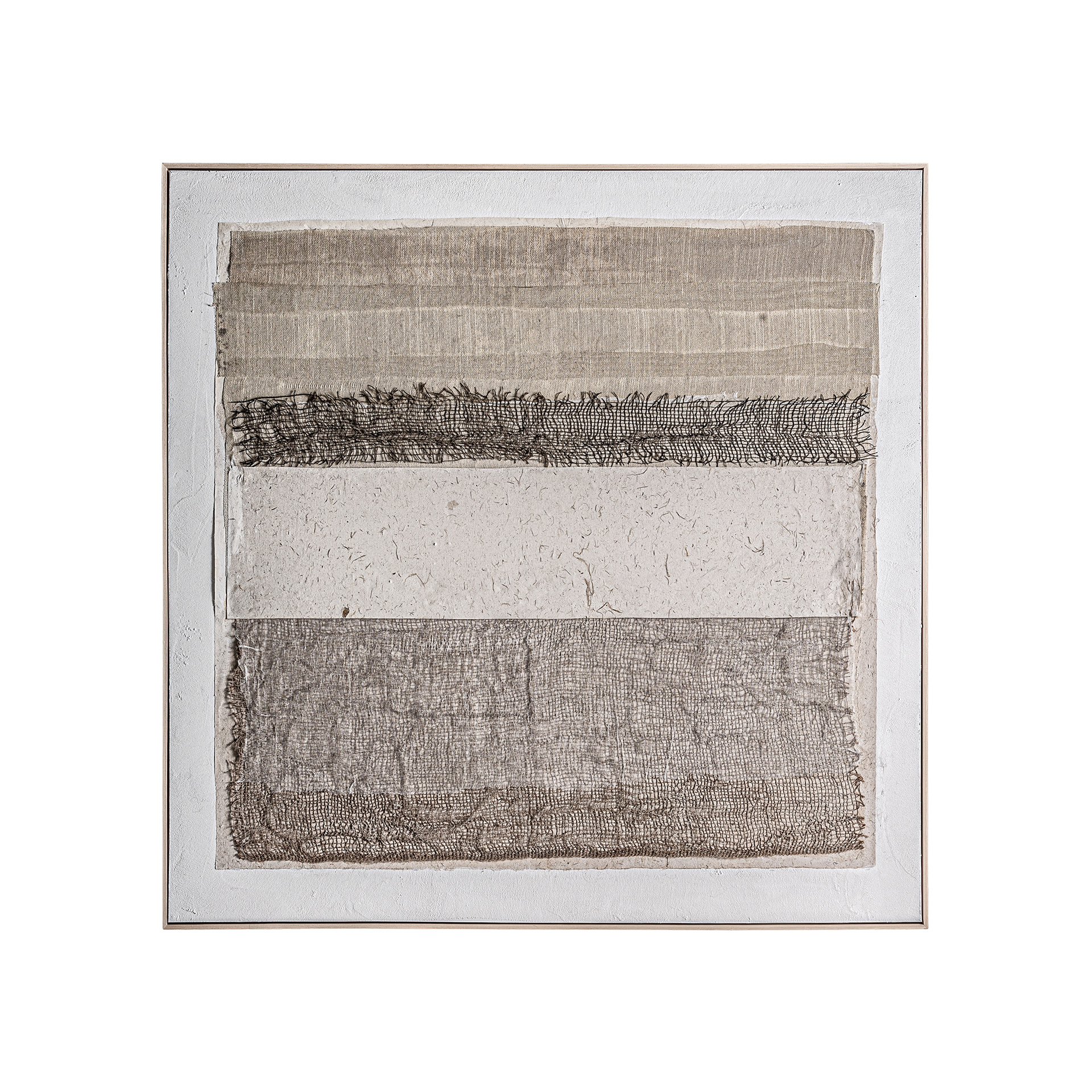 Cuadro Bavois de estilo contemporáneo fabricado en lienzo en color blanco roto combinado con madera de pino en color marrón claro en color tonos en marrón.