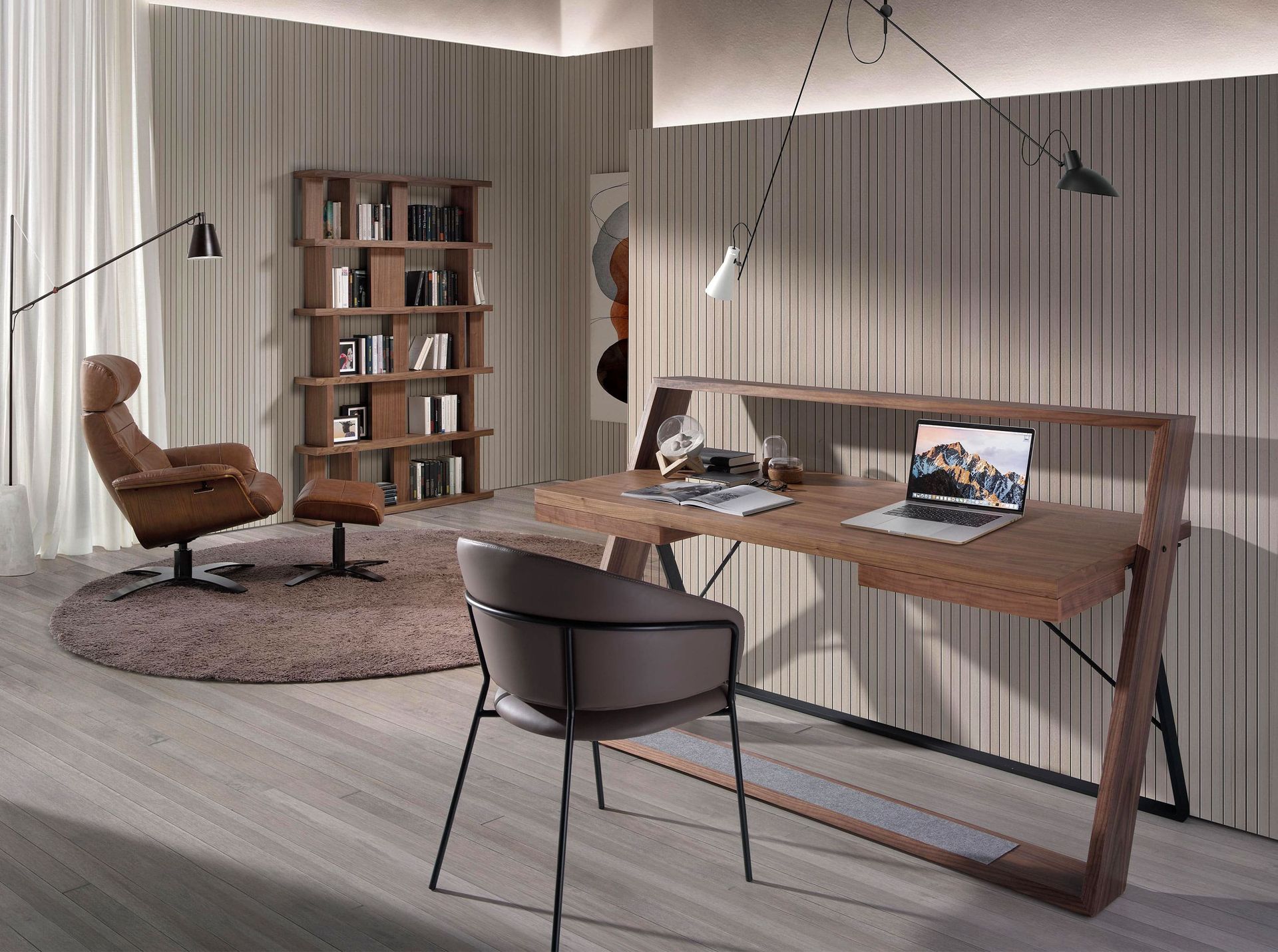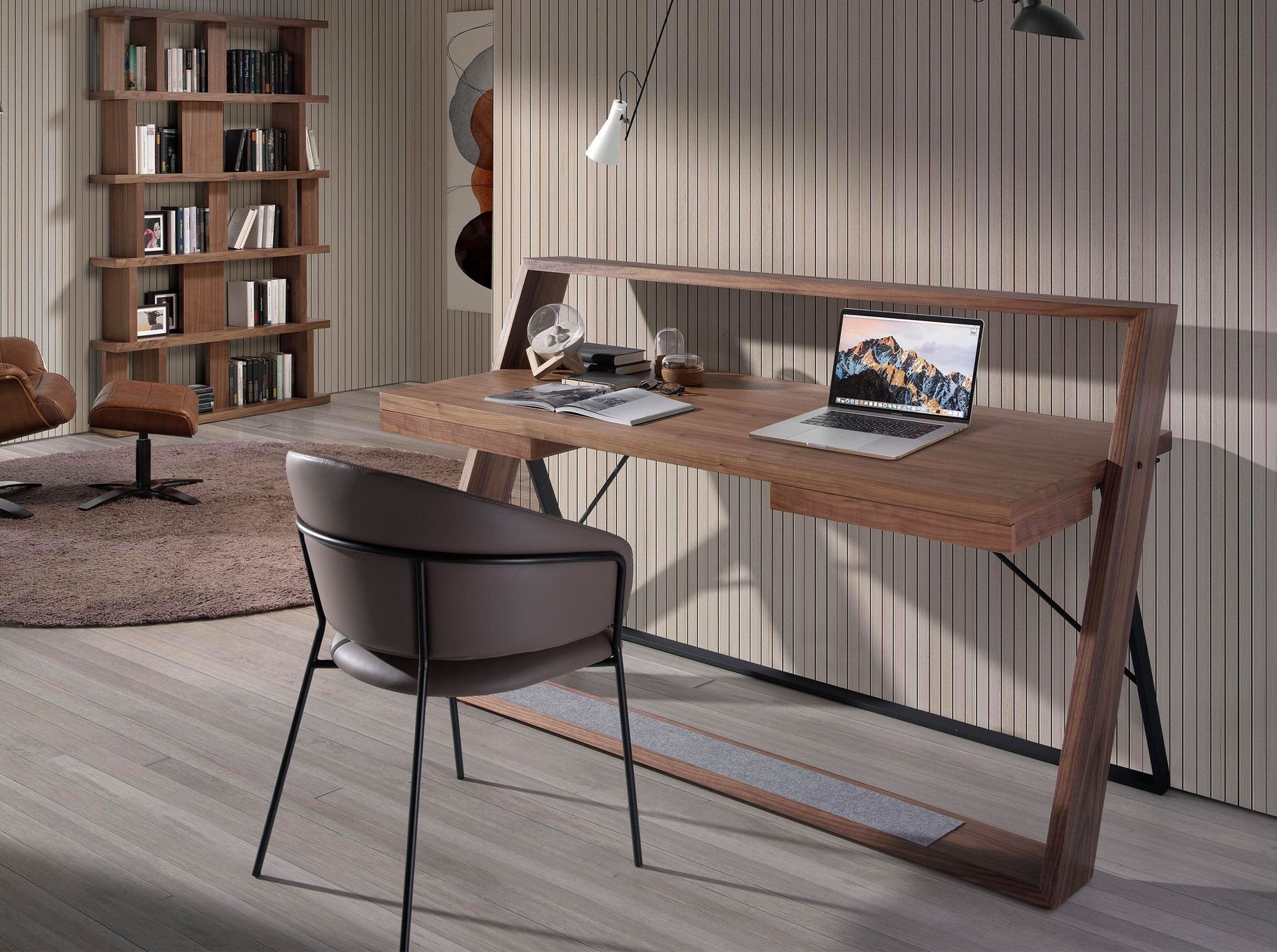 Escritorio nogal y acero negro modelo 3216 Angel Cerdá S.L.Escritorio de diseño moderno fabricado en madera chapada en nogal natural. El diseño de sus patas de acero inoxidable color negro aportará un toque sofisticado y exclusivo a su estancia. Gracias a su amplio espacio de almacenaje con 2 cajones con sistema de apertura uñero y cierre soft-closing, le permitirá mantener todo en orden y en su sitio. Medidas del producto: 176 x 76 x 105 cm.- La original estructura fabricada en madera chapada en nogal natural de 0,5 mm de espesor, es ideal para aportar ese toque de calidez y elegancia que busca para su oficina. – Fiel a las últimas tendencias en decoración, el acero negro le permitirá crear un espacio único, personal y con carácter. – Todos nuestros productos están fabricados con materiales de la más alta calidad, siendo además un elemento versátil y funcional para su zona de trabajo o vestidor. – Gracias a sus 2 cajones, cuenta con espacio de almacenaje para poder guardar todo lo que necesite tener a mano para su día a día, manteniendo así el orden visual en la habitación.