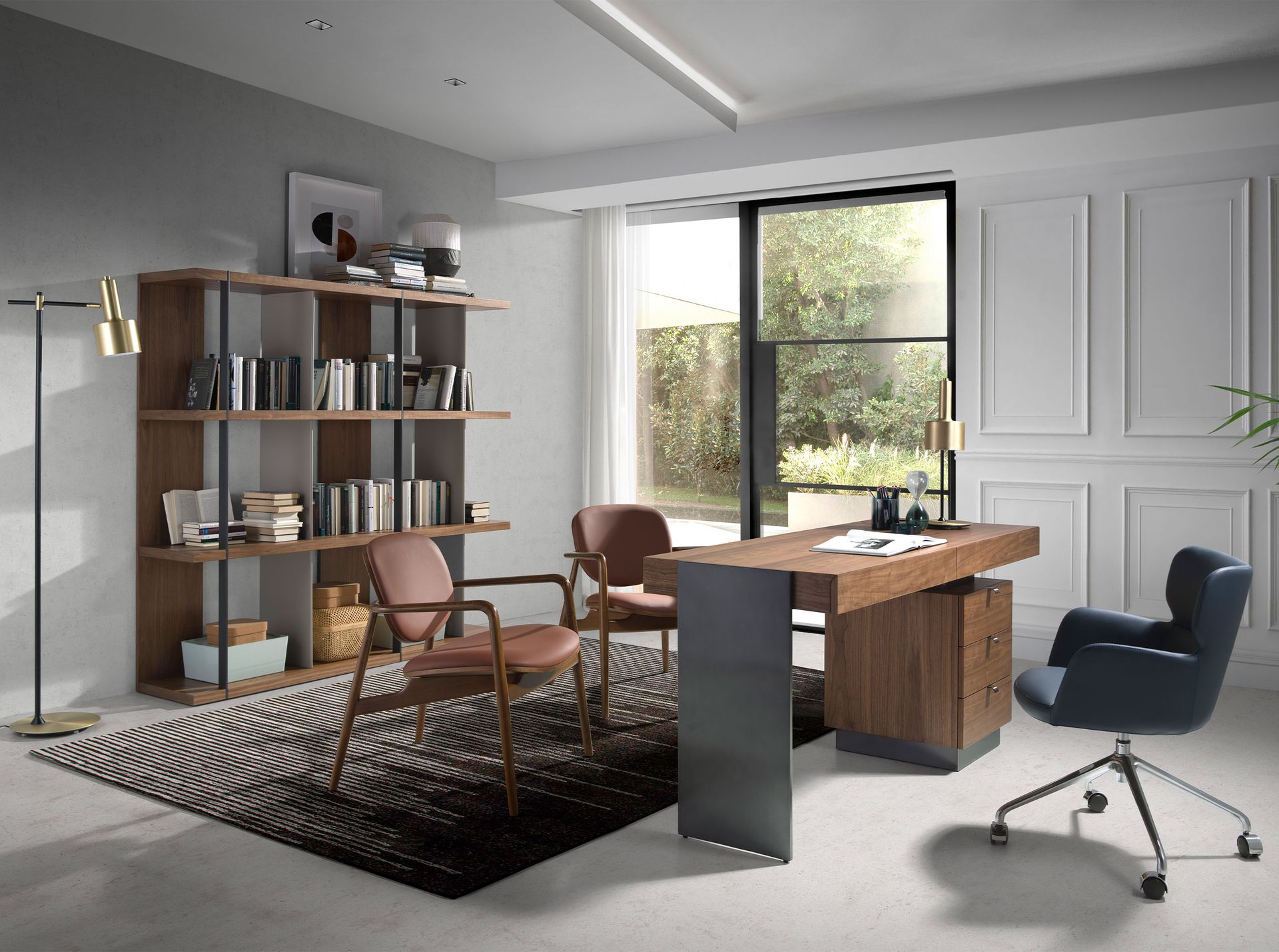 Escritorio nogal y acero pulido oscurecido modelo 3237 Angel Cerdá S.L.Escritorio de diseño moderno con tapa y estructura de madera chapada en nogal natural. El diseño de sus patas de acero inoxidable pulido oscurecido aportará un toque sofisticado y exclusivo a su estancia. Gracias a su amplio espacio de almacenaje con 5 cajones con sistema de apertura uñero y cierre soft-closing, le permitirá mantener todo en orden y en su sitio. Medidas del producto: 160 x 60 x 76 cm.- La original estructura fabricada en madera chapada en nogal natural de 0,5 mm de espesor, es ideal para aportar ese toque de calidez y elegancia que busca para su oficina. – El acero de sus patas, así como su diseño lineal, permite que encaje en cualquier espacio de su hogar. – Todos nuestros productos están fabricados con materiales de la más alta calidad, siendo además un elemento versátil y funcional para su zona de trabajo o vestidor. – Gracias a sus 5 cajones, cuenta con espacio de almacenaje para poder guardar todo lo que necesite tener a mano para su día a día, manteniendo así el orden visual en la habitación.