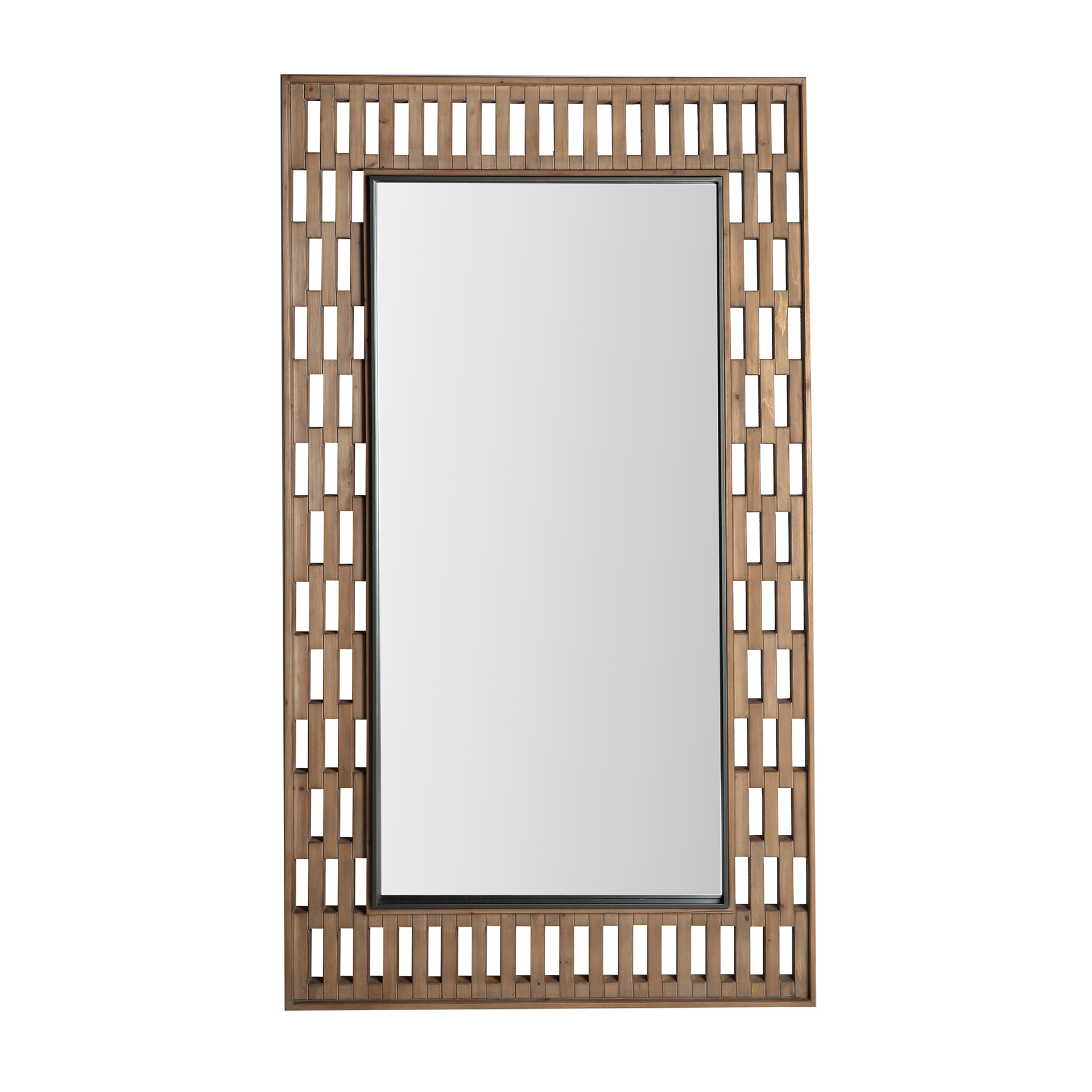 Espejo Busk de estilo contemporáneo, fabricado en madera de abeto en color marrón, combinado con espejo y madera dm.