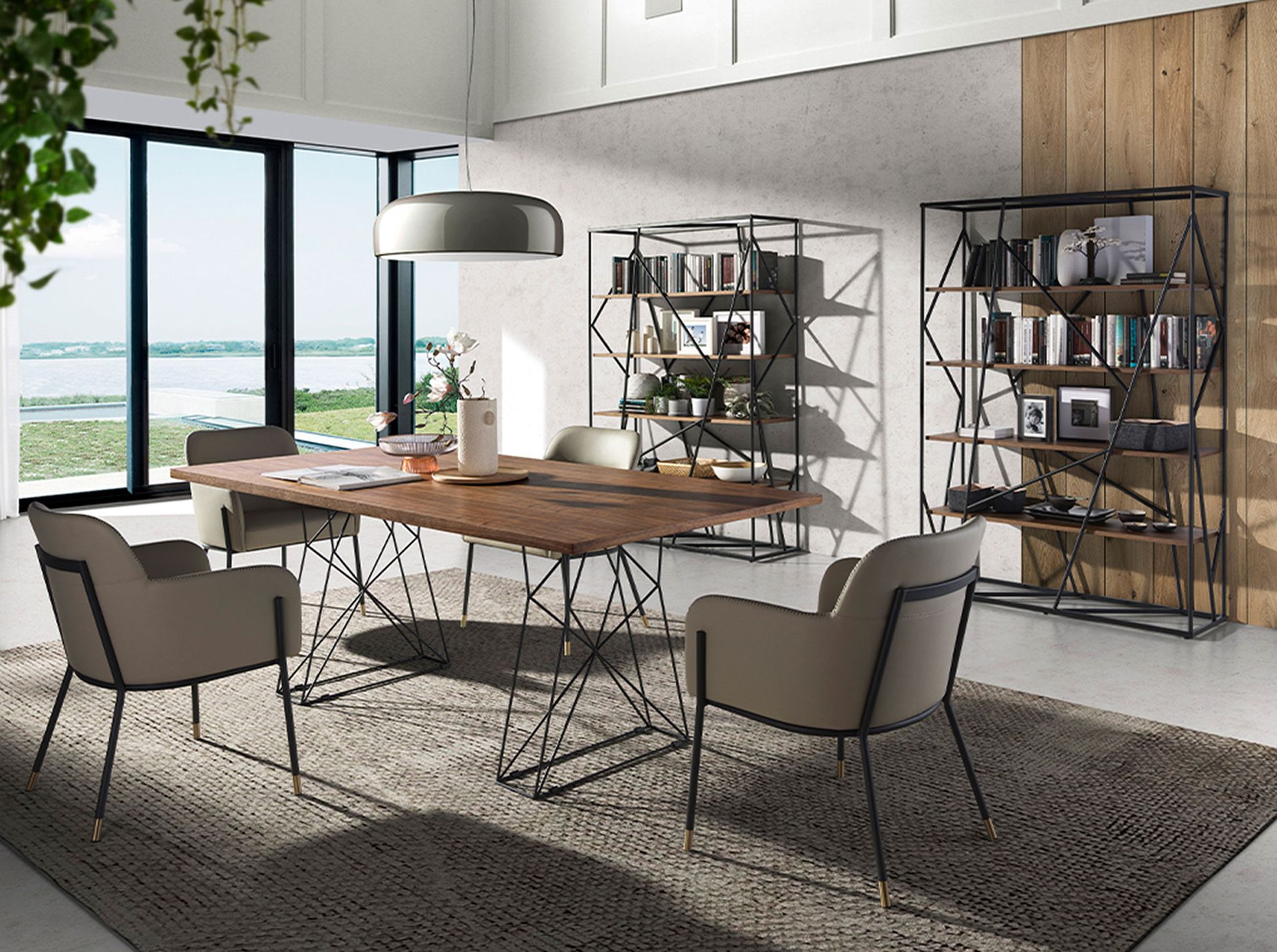 Estantería nogal y acero negro
