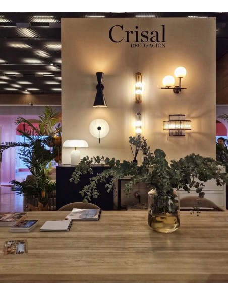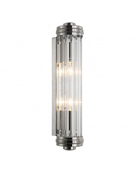 Lámpara aplique de pared en metal color plateado y cilindros de cristal.