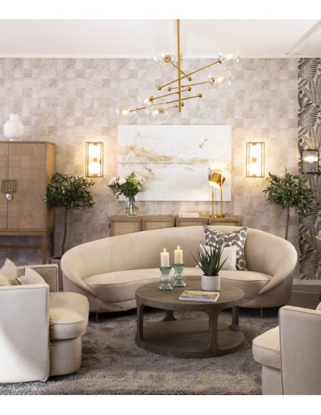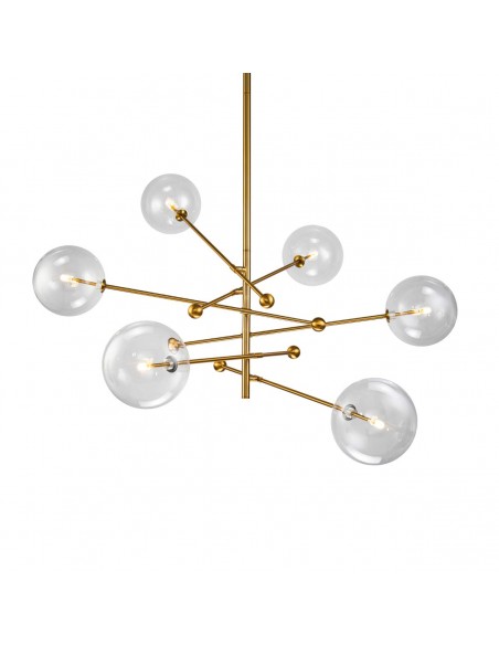 Lámpara de techo en metal dorado con pantallas de bola de cristal.