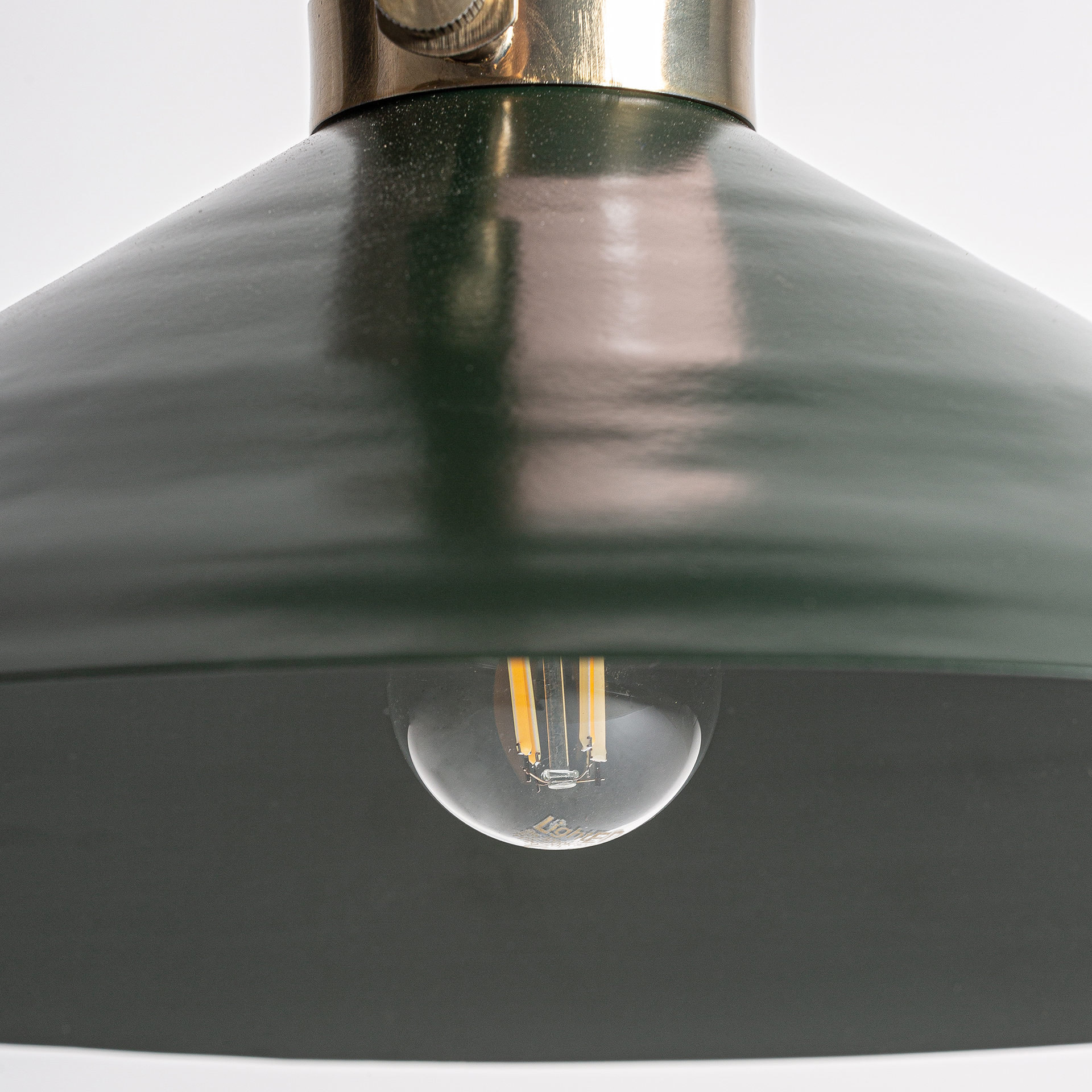 Lámpara de colgar Beth de estilo contemporáneo fabricado en hierro en color verde combinado con latón en color rosa.