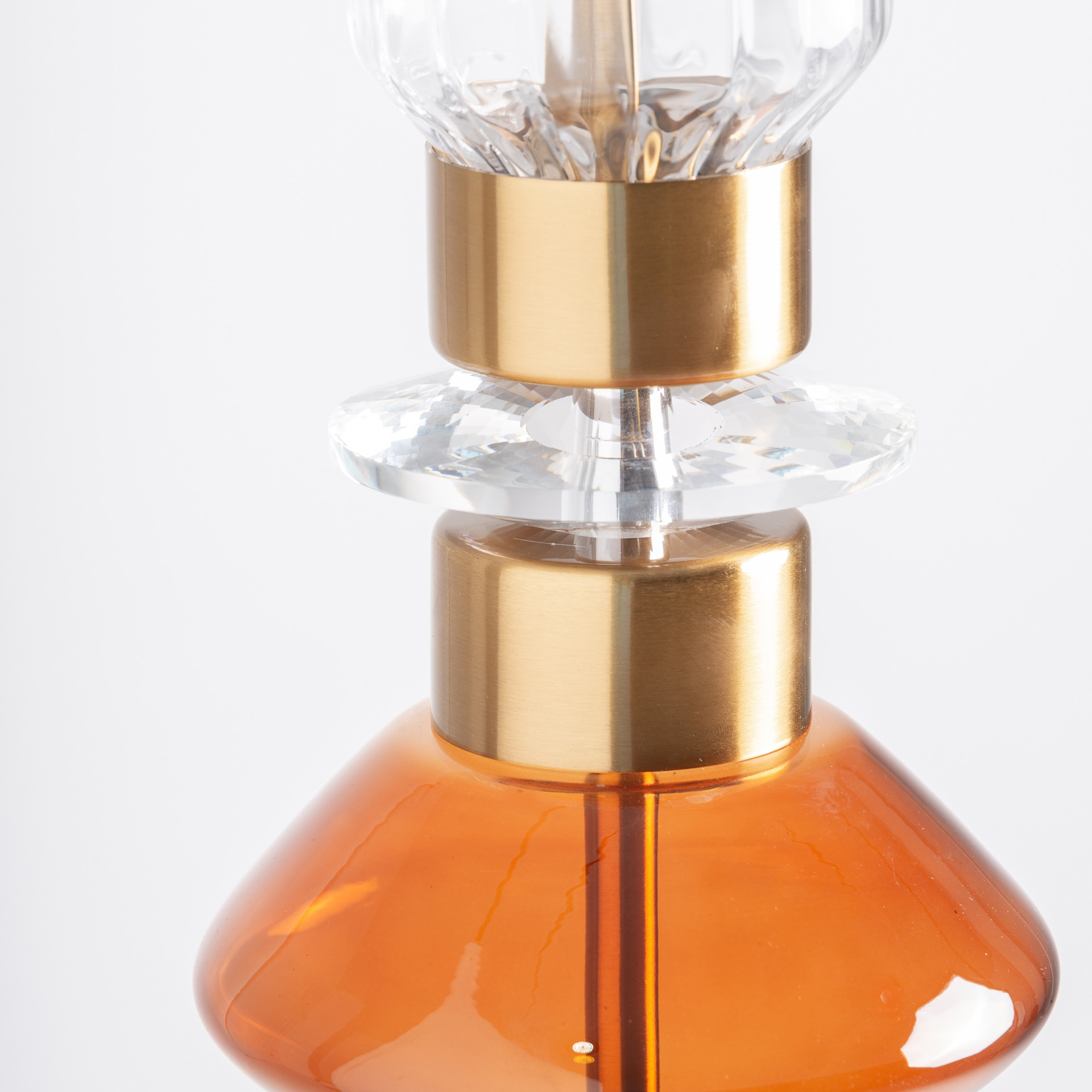 Lámpara de colgar Anna de estilo art deco fabricado en cristal en color tonos neutros con acabado ahumado combinado con acero en color cobre.