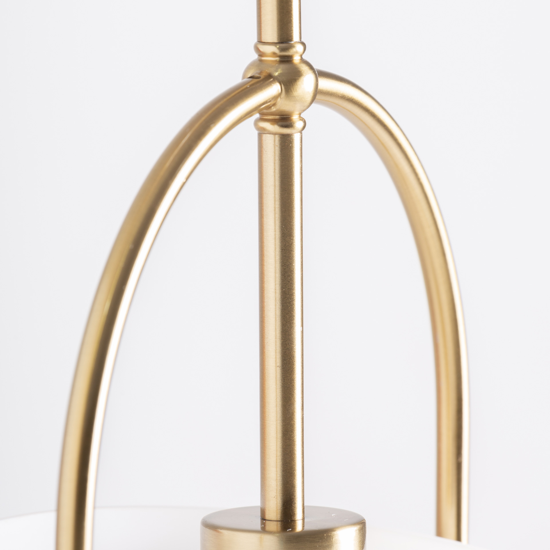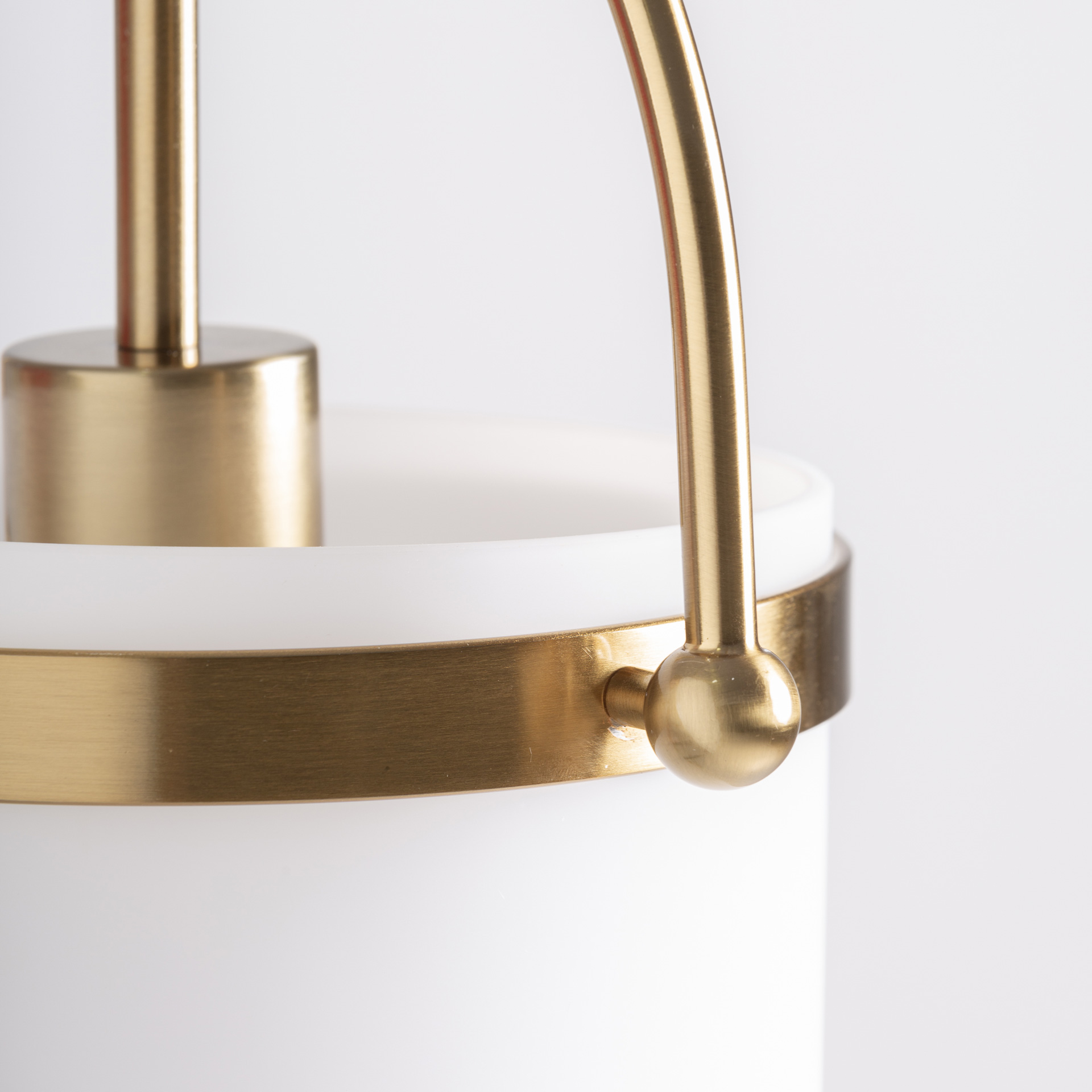 Lámpara de colgar Kihe de estilo art deco fabricado en cristal en color blanco combinado con acero en color oro con acabado viejo. Producto desmontable.