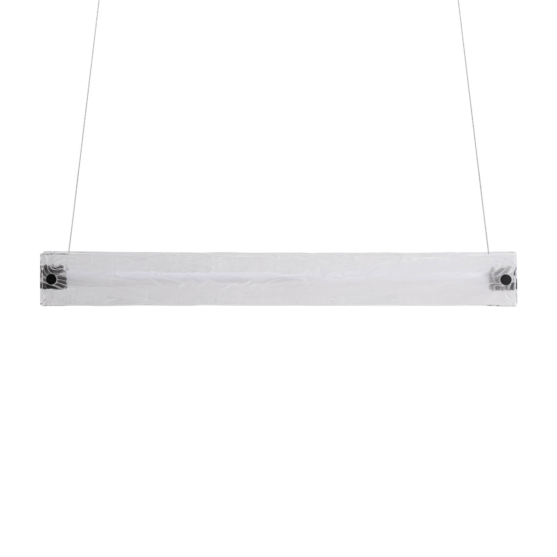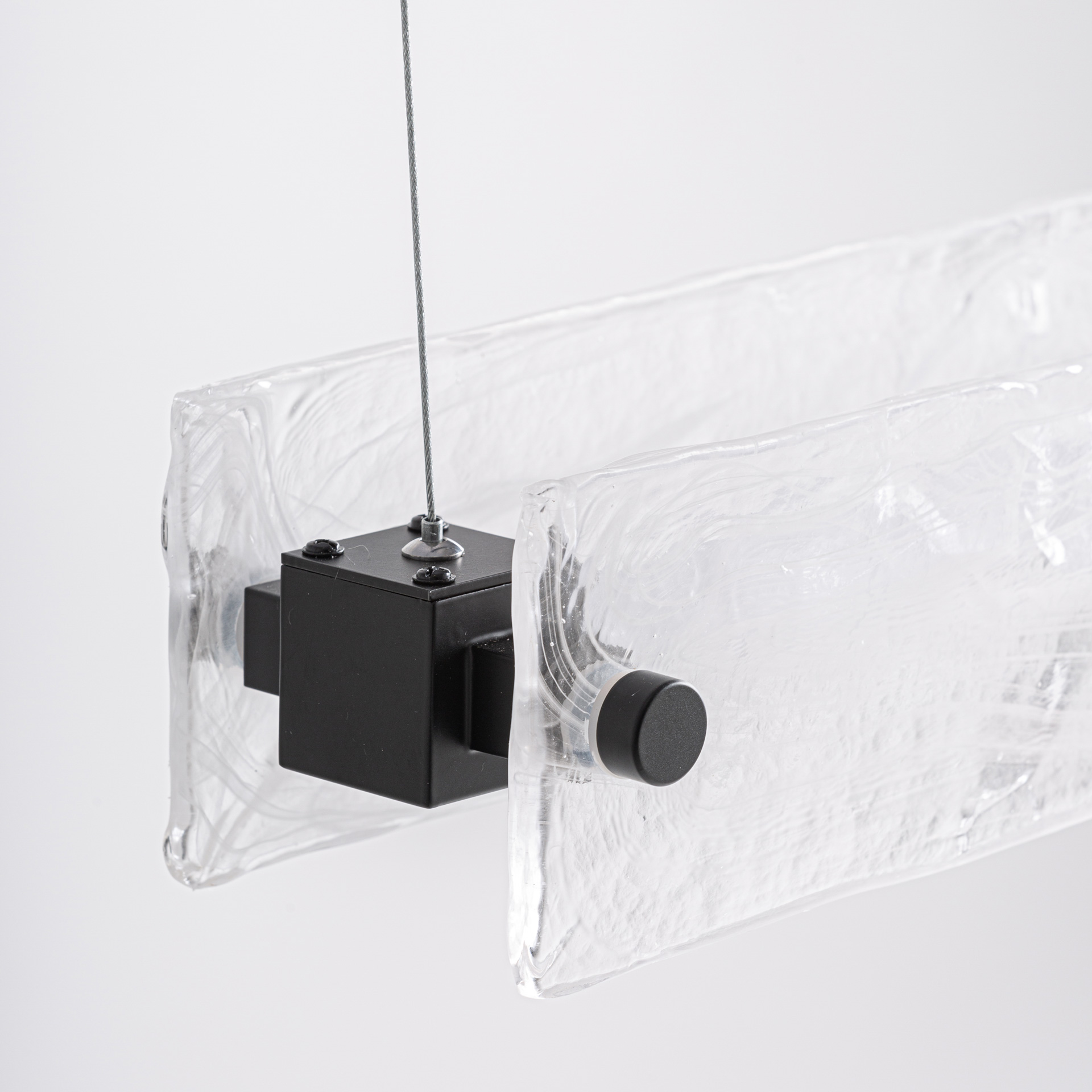 Lámpara de colgar Shalese de estilo art deco fabricado en cristal en color blanco con acabado texturizado combinado con acero en color negro. Producto desmontable.