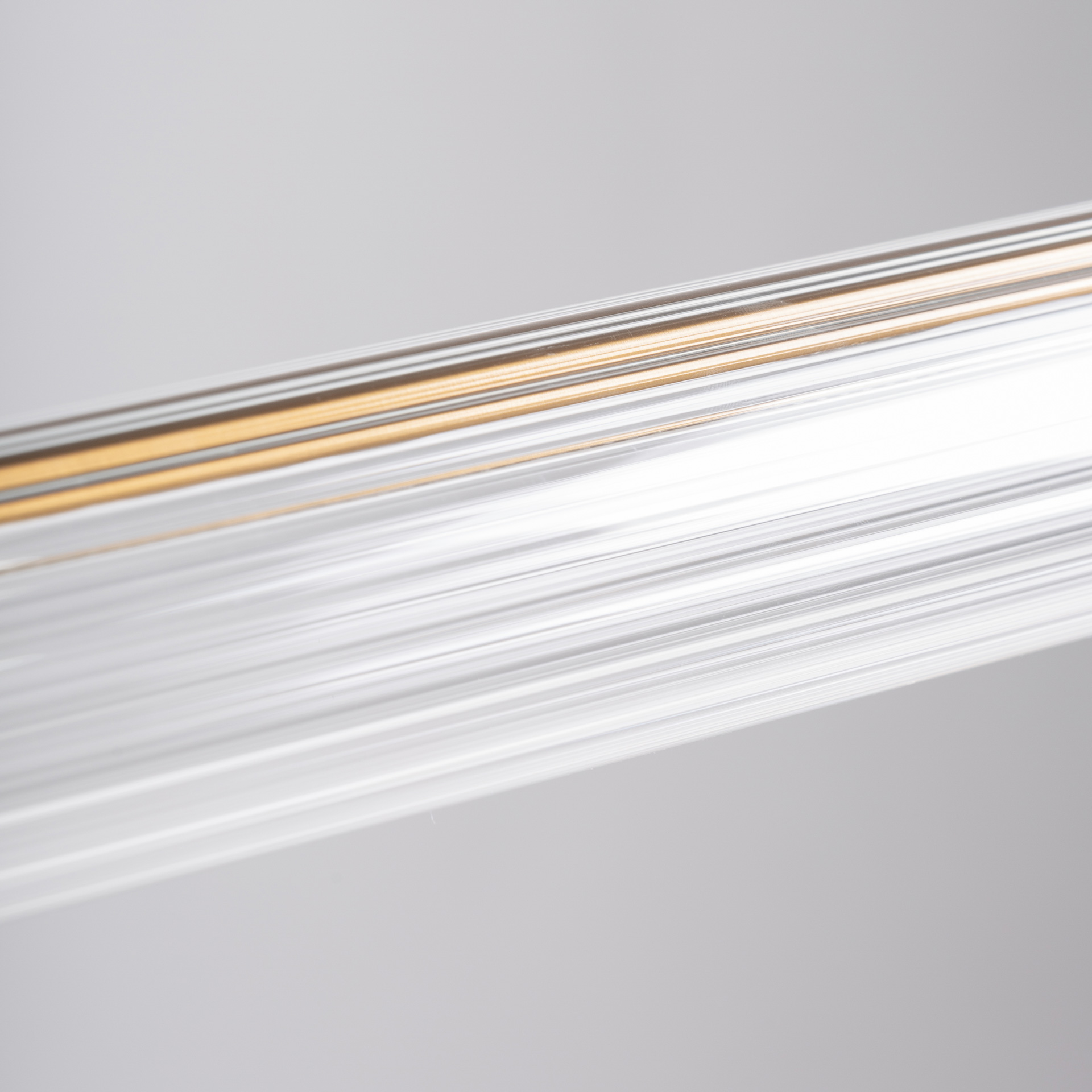 Lámpara de colgar Marlena de estilo art deco fabricado en cristal en color transparente con acabado ahumado combinado con aluminio en color bronce.