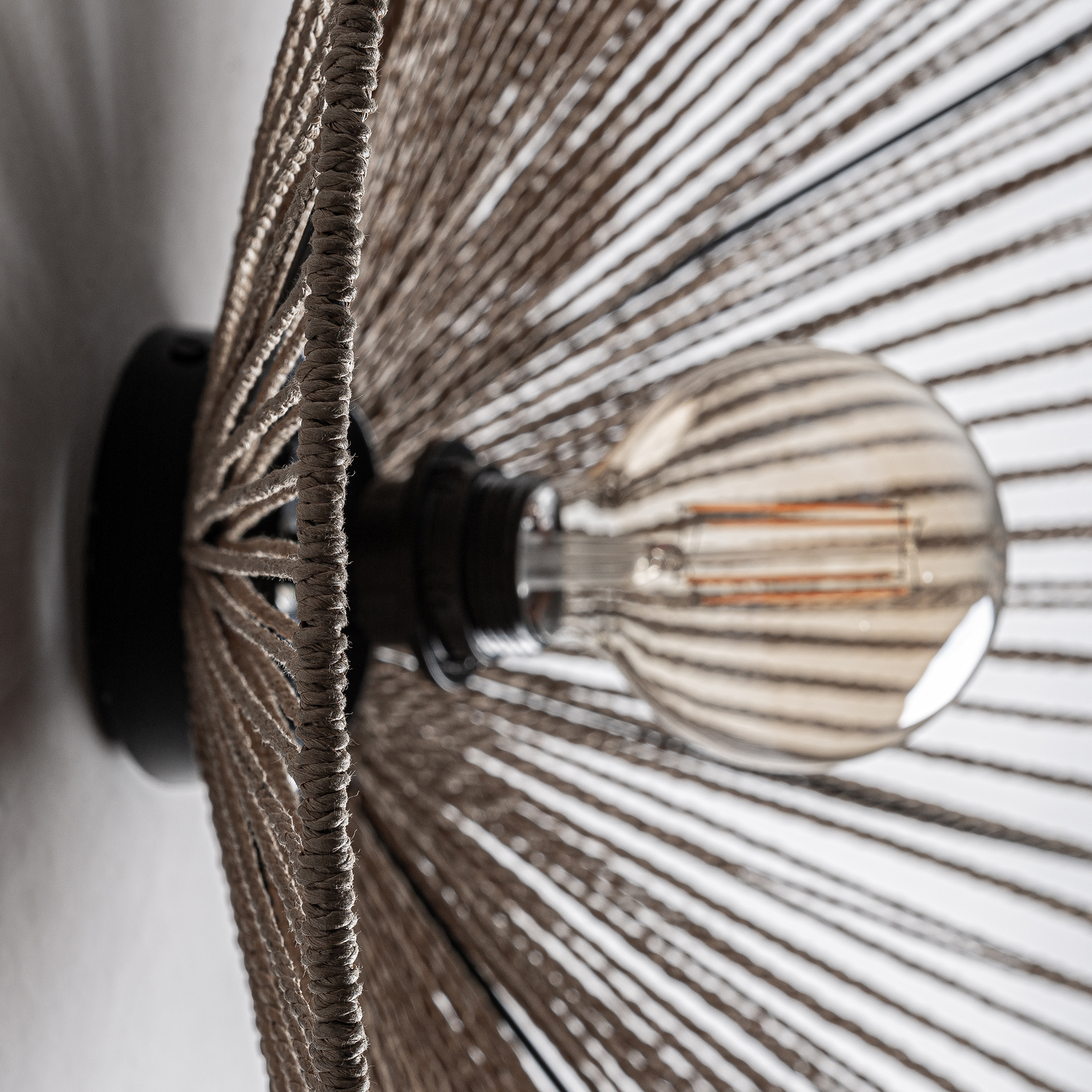 Lámpara de colgar jacquard de estilo contemporáneo. Fabricado en rafia en color marrón claro.