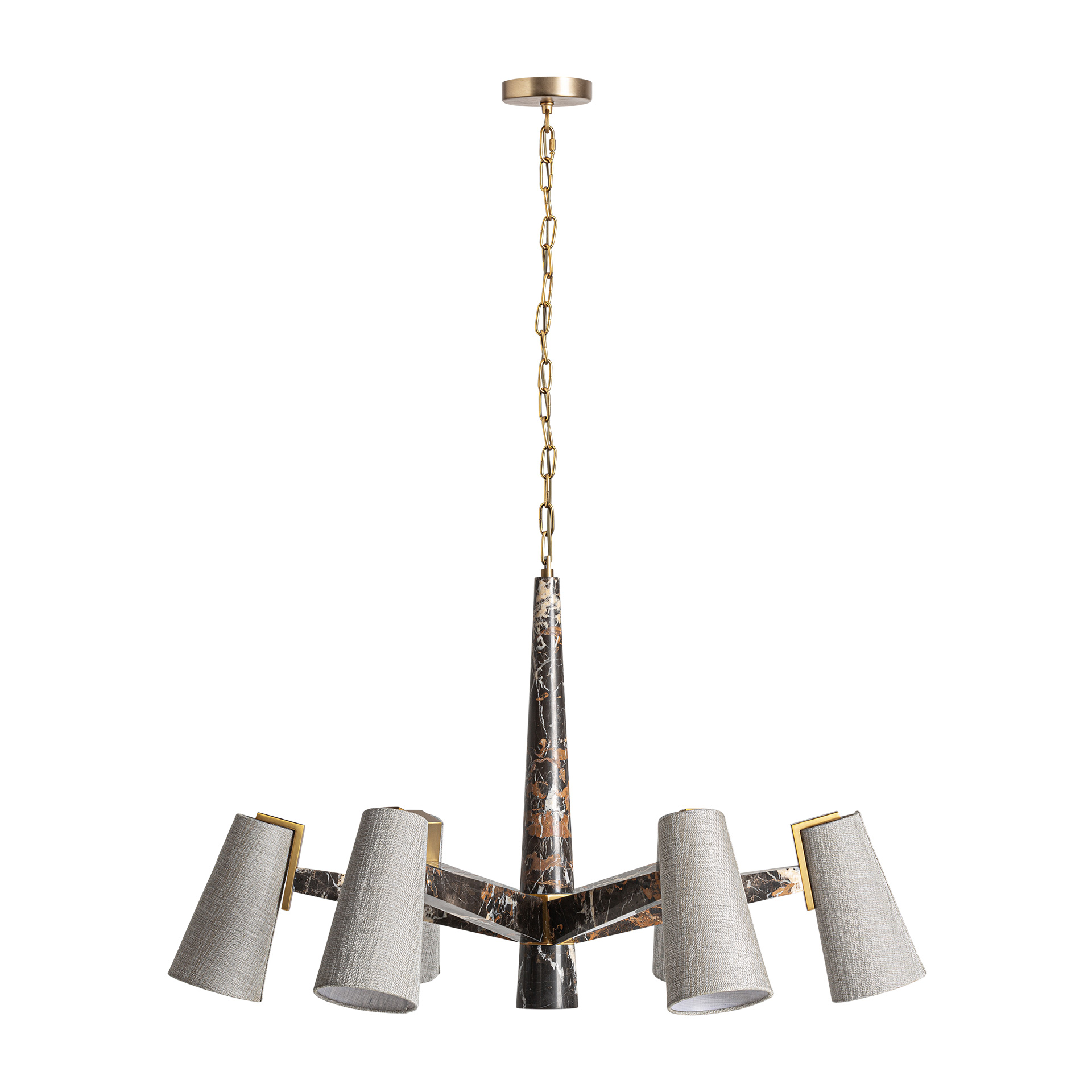 Lámpara de colgar Wale de estilo art deco fabricado en mármol en color negro combinado con metal en color dorado y poliéster en color blanco roto. Producto desmontable.
