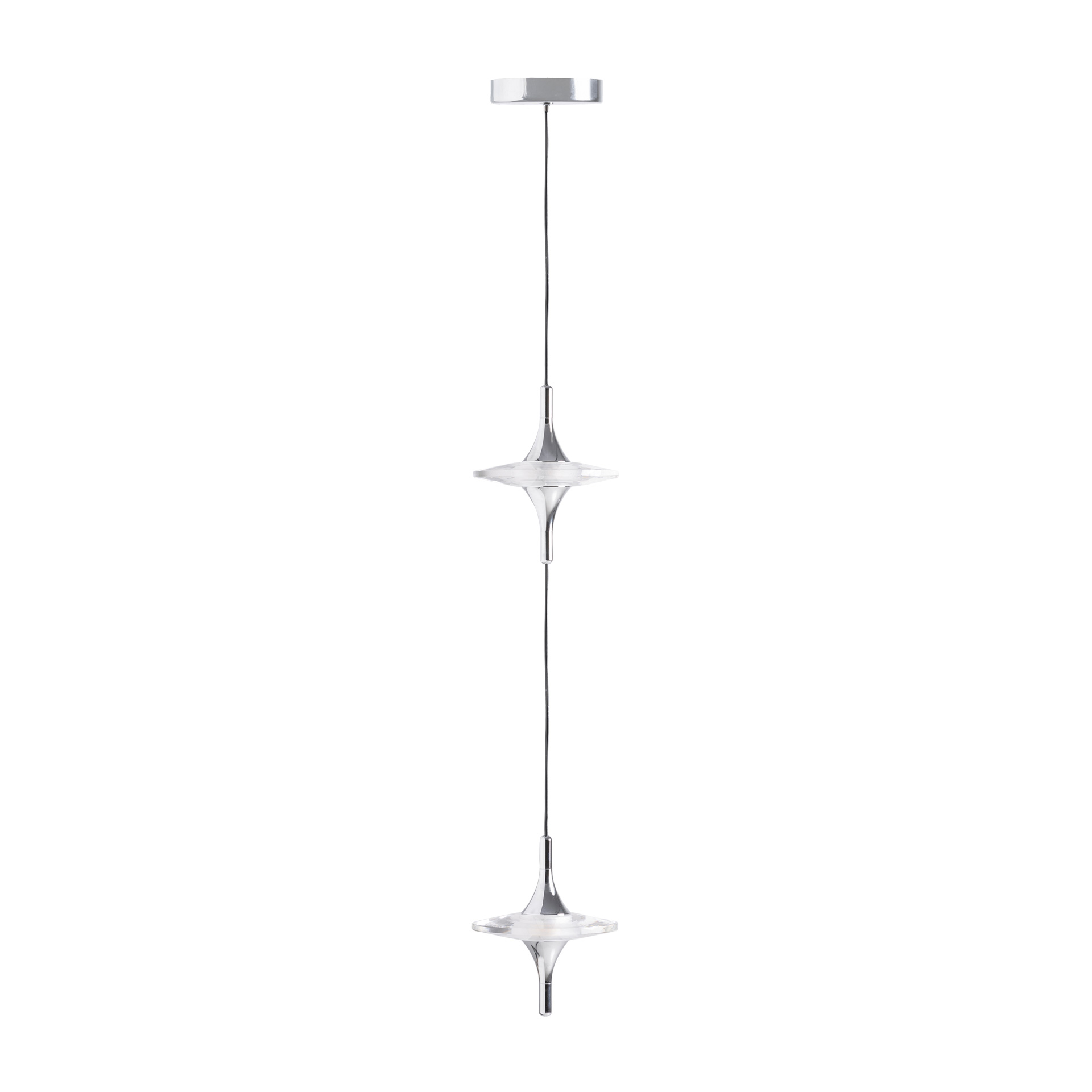 Lámpara de colgar Xalesh de estilo art deco fabricado en cristal en color transparente combinado con acero en color plata.