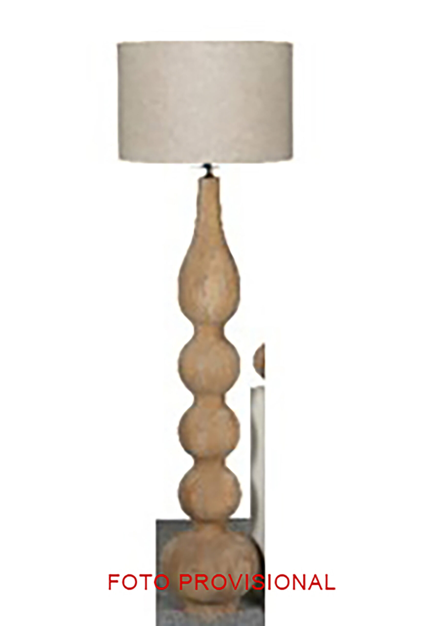 Lámpara de pie fabricado en madera de mango en color marrón combinado con yute en color crema.