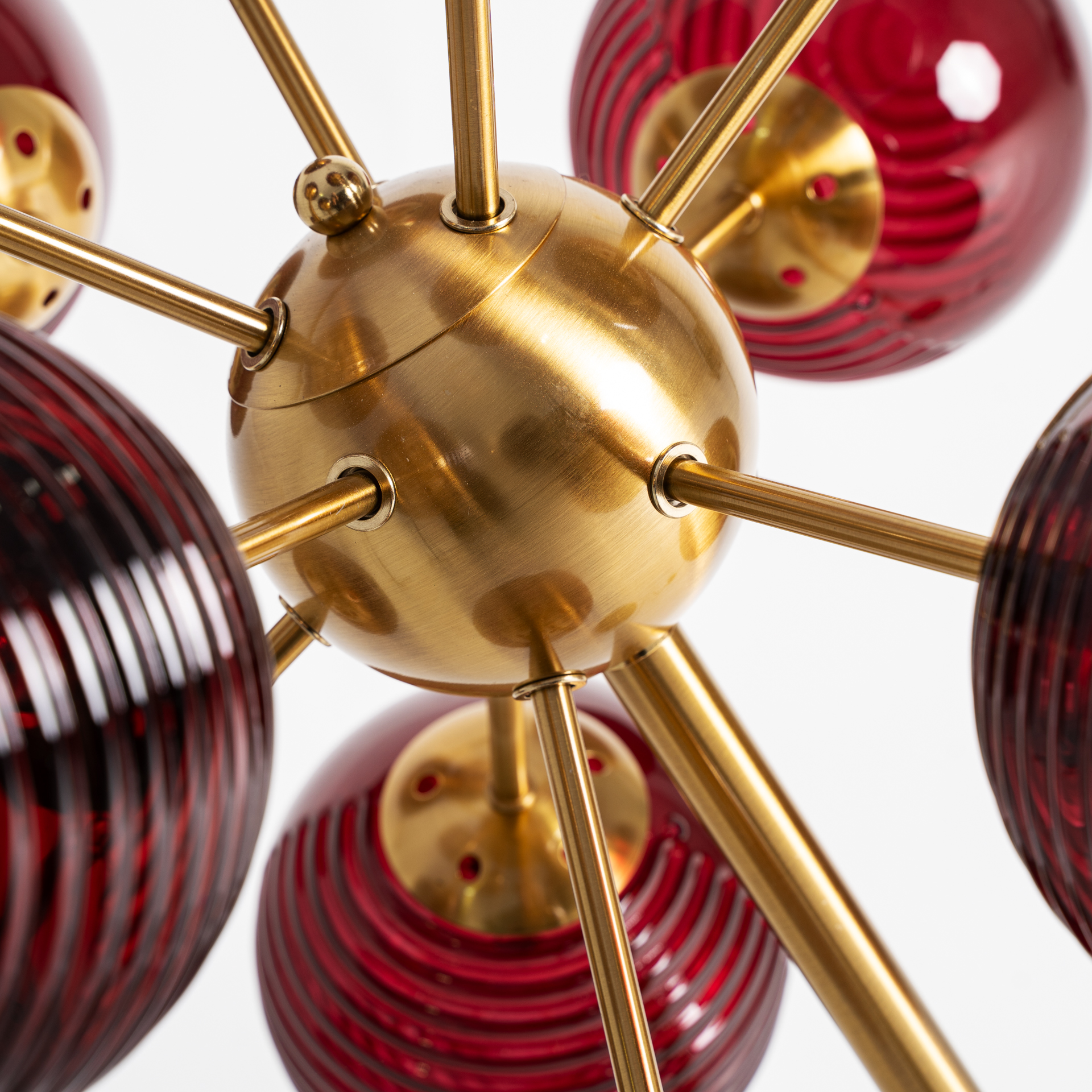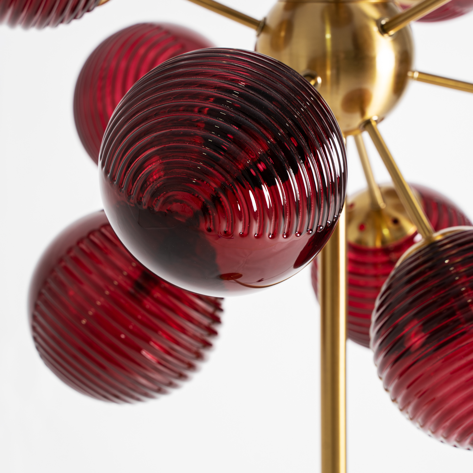 Lámpara de pie Alaia de estilo art deco fabricado en cristal en color burdeos combinado con hierro en color oro. Producto desmontable.