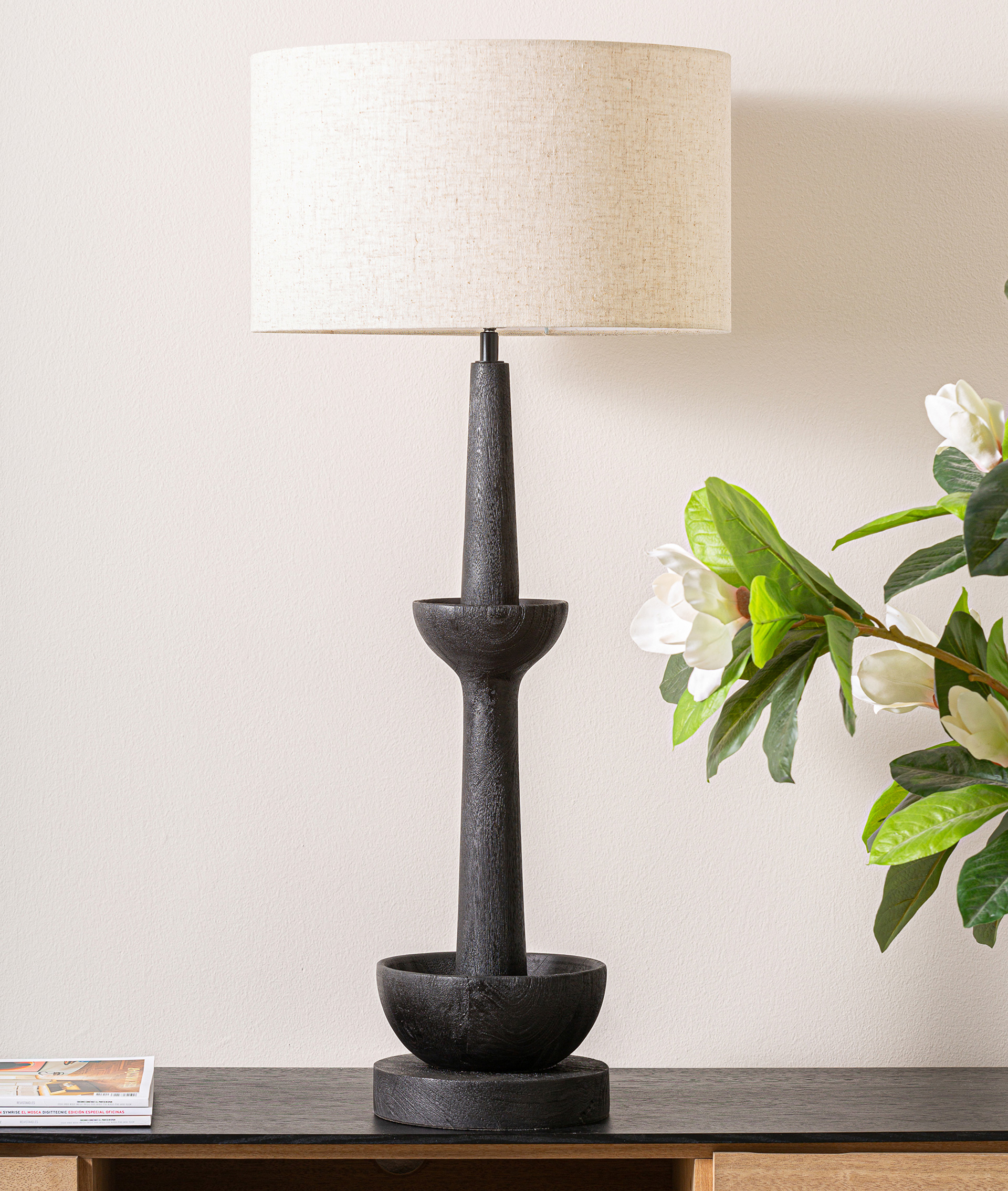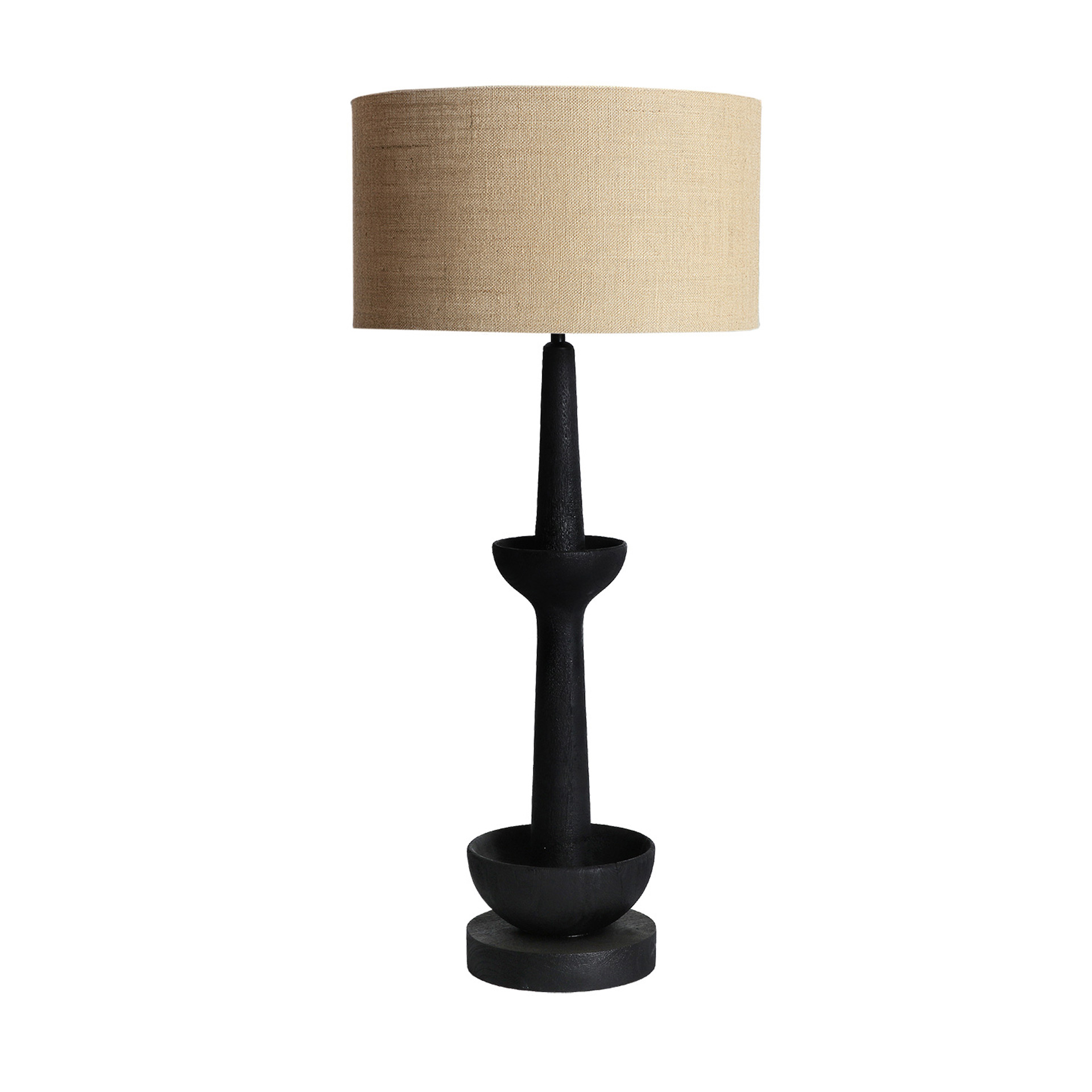 Lámpara de sobremesa rectangular haverslev de estilo contemporáneo, fabricado en madera de mango en color negra, combinado con algodón en color beige.