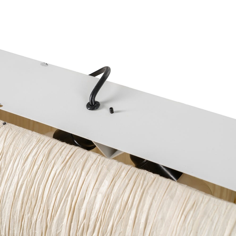 Material: papel – hierro Casquillo: 4 x E27/9w led Bombilla: no incluida Cable negro, largo 150cm. Altura regulable.