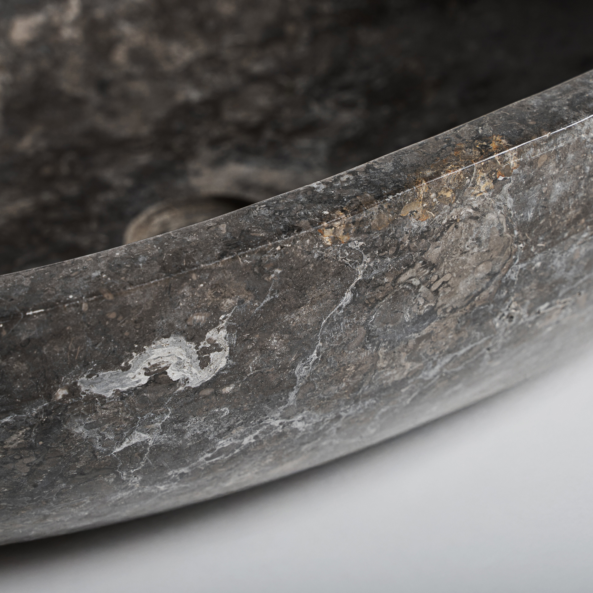 Lavabo Cares de estilo contemporáneo fabricado en mármol en color gris.