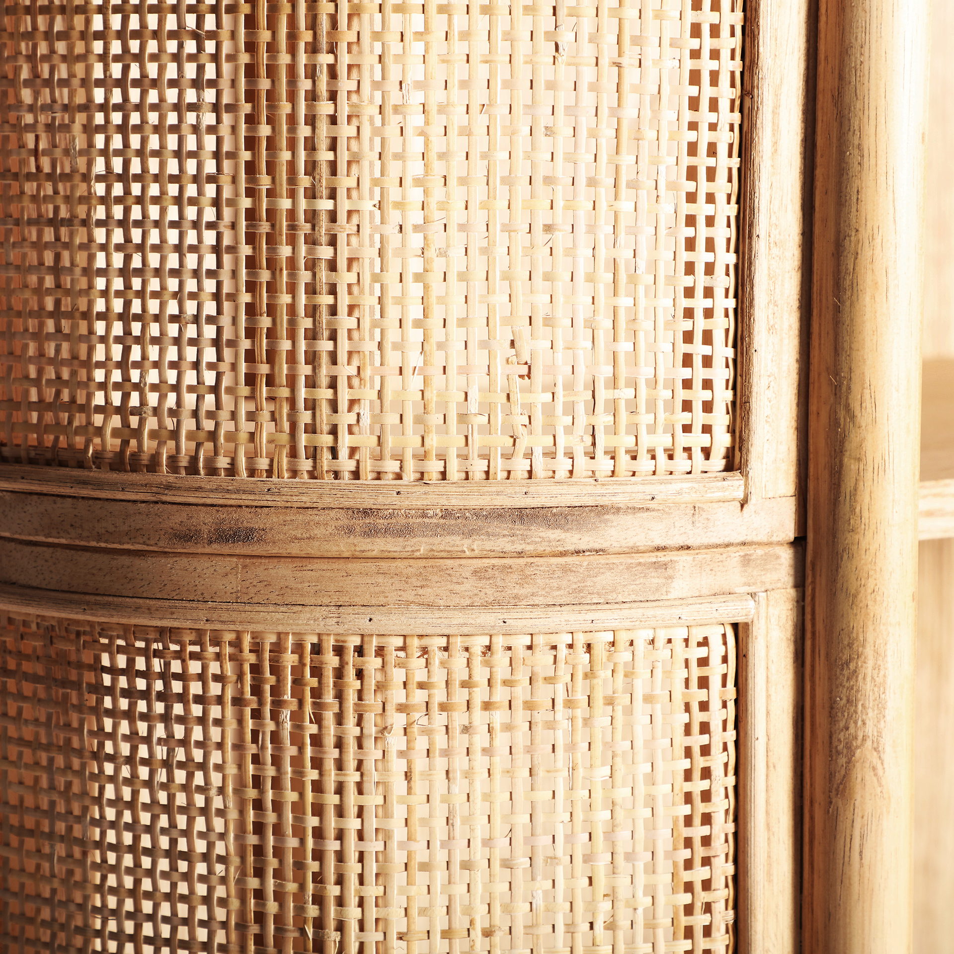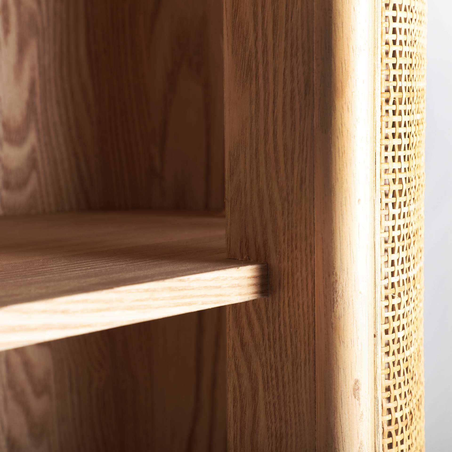 Librería oval ikla, en color marrón, de estilo nórdico. Fabricado en madera dm, combinado con madera de fresno y ratán.