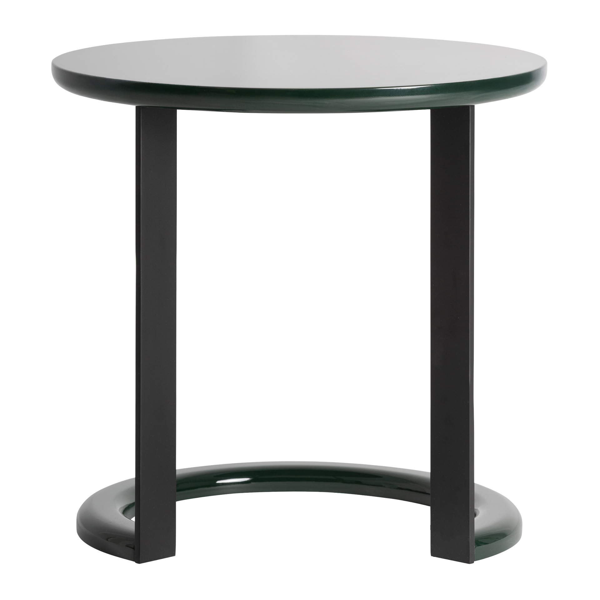 Mesa auxiliar fabricado en madera dm en color verde con acabado lacado combinado con hierro en color negro.