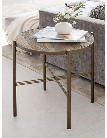 Mesa auxiliar dorada y olmo
