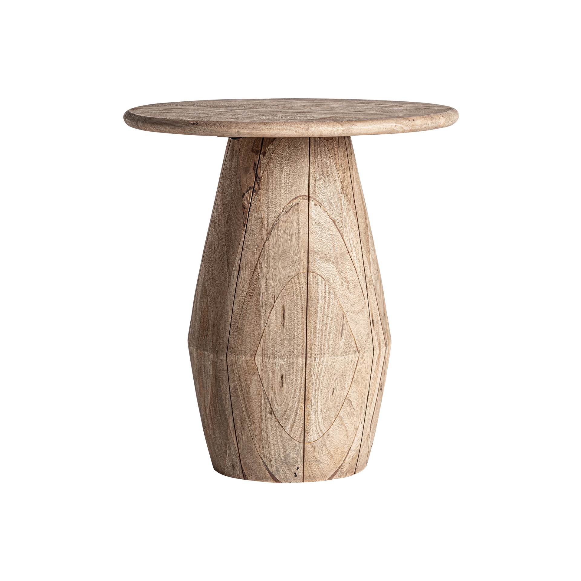 Mesa auxiliar jacquard de estilo contemporáneo. Fabricado en madera de mango en color marrón claro.