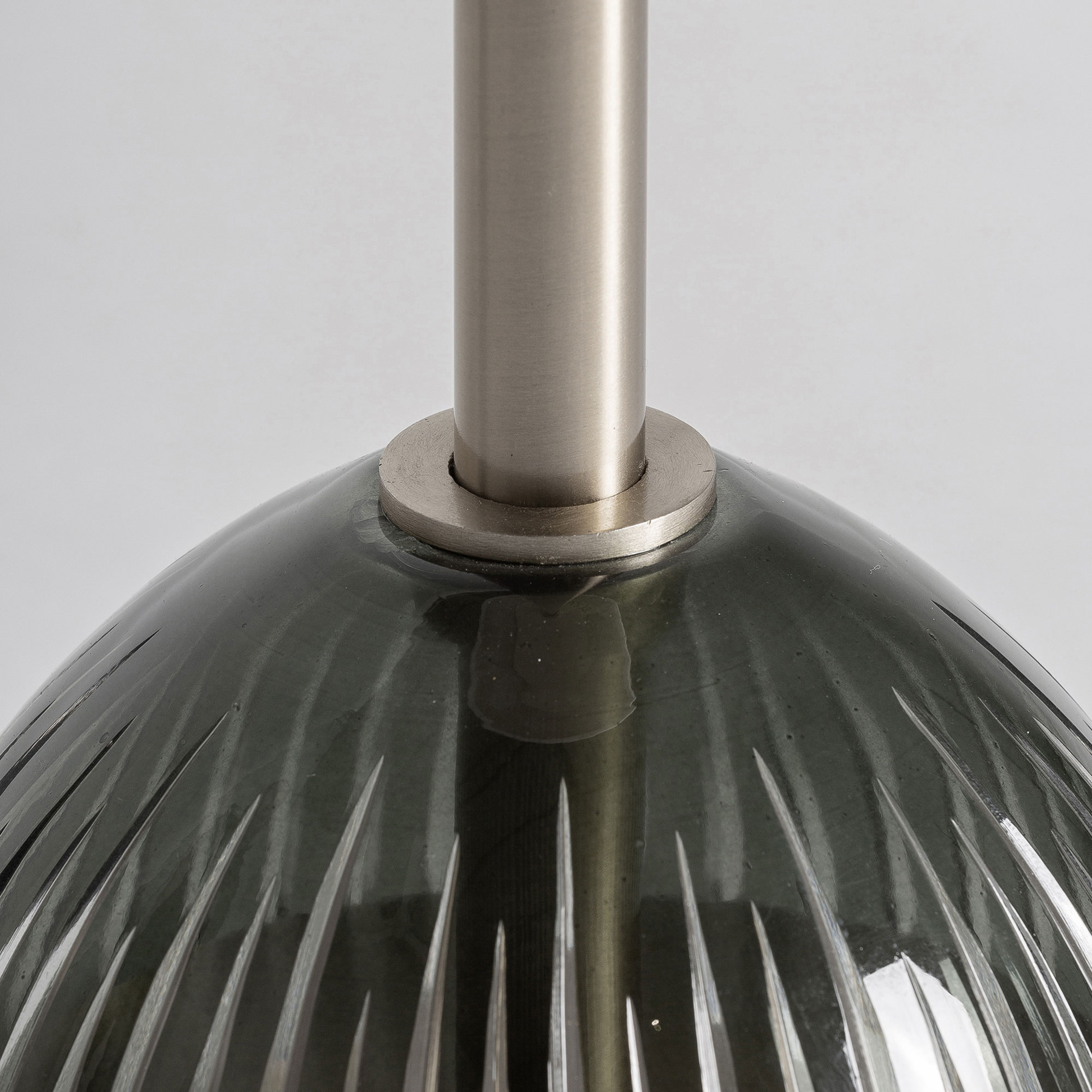 Mesa auxiliar Murano de estilo art deco fabricado en vidrio en color gris combinado con mármol en color blanco y acero en color plata. Producto desmontable.