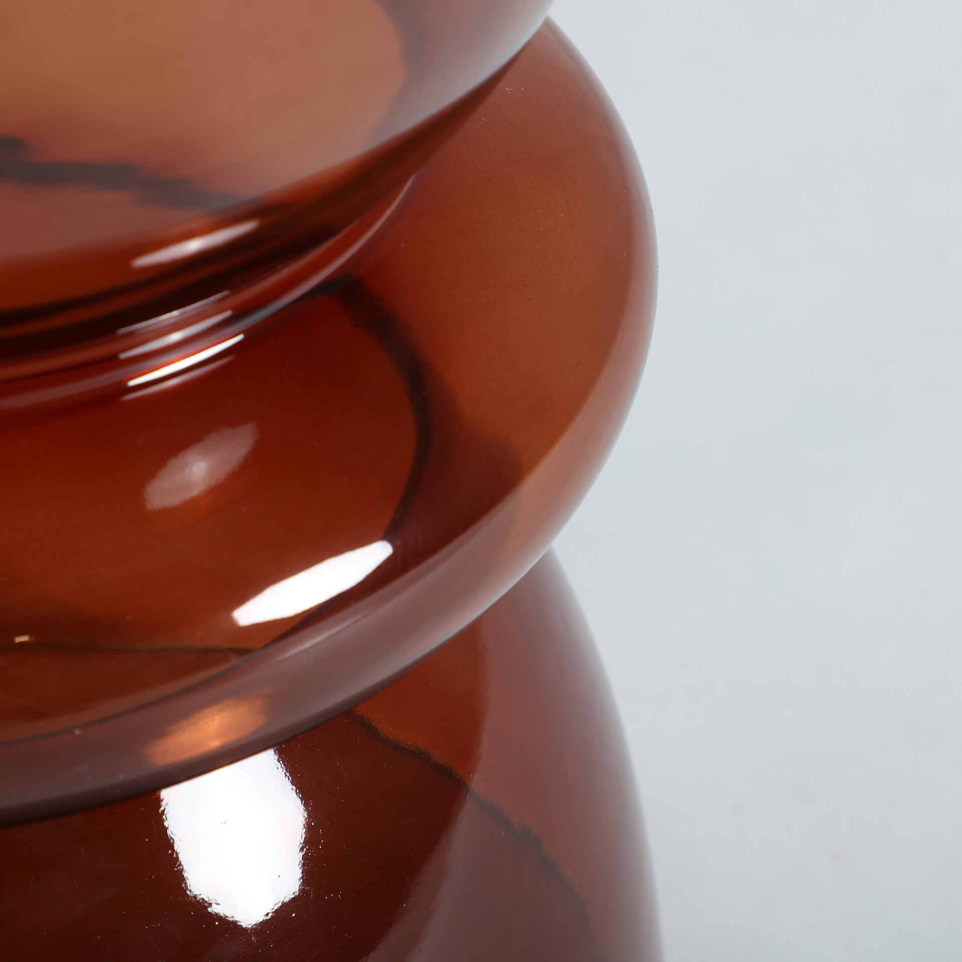 Mesa auxiliar Rustrel de estilo contemporáneo, fabricado en vidrio en color naranja con acabado traslúcido.