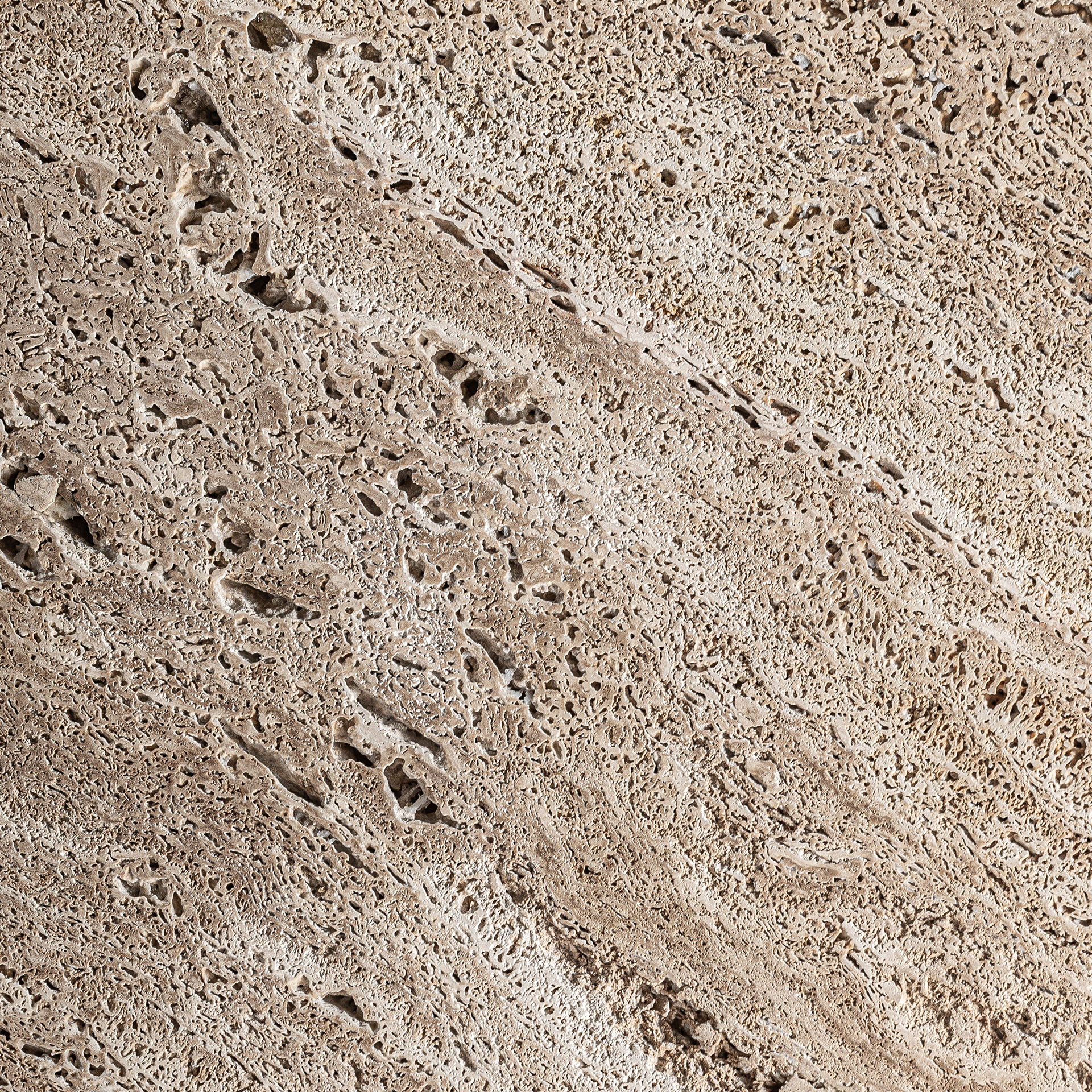 Mesa auxiliar Tivoli de estilo contemporáneo fabricado en travertino en color beige combinado con madera de mango en color marrón. Producto desmontable.