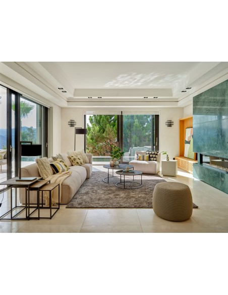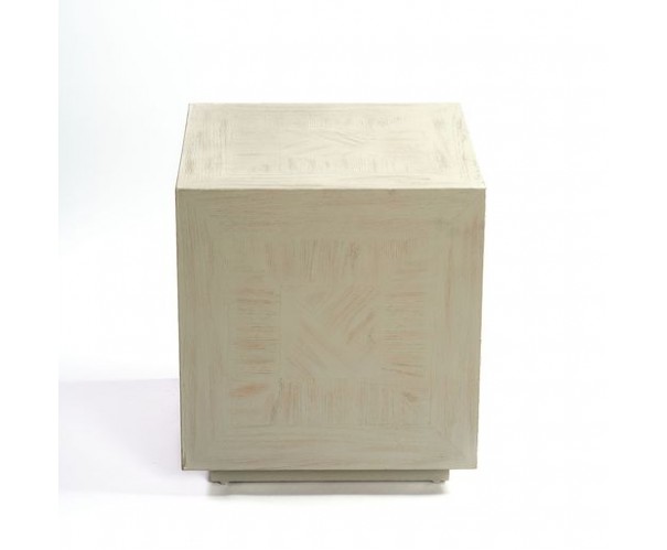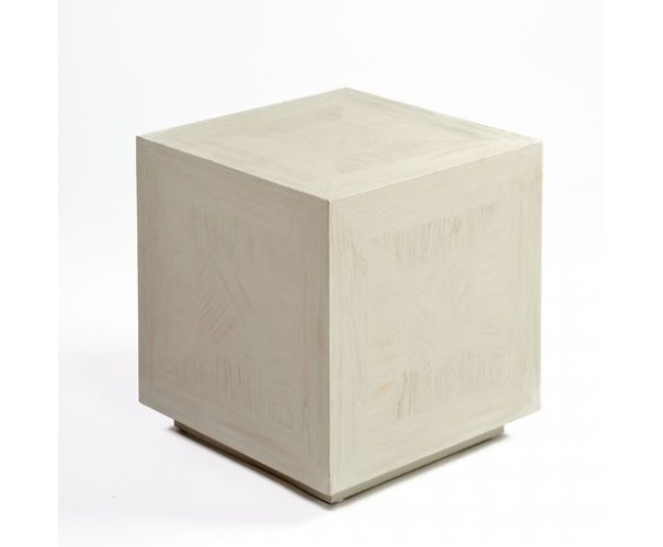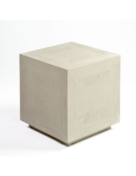 Mesa con forma cúbica en madera de roble con acabado en blanco grisáceo. Ideal para combinar con el modelo XEI. Genial para darle un toque moderno y actual a tu espacio.