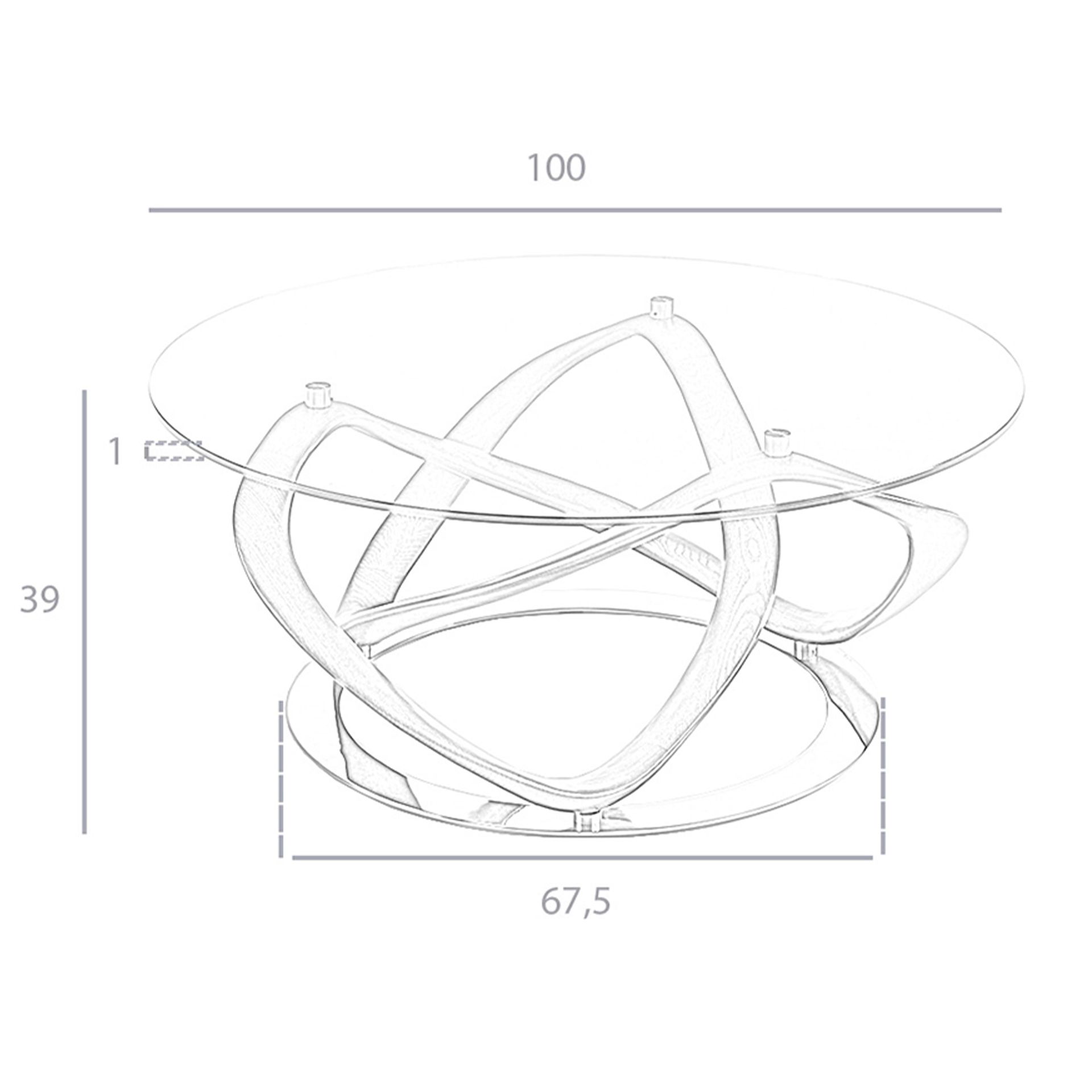 Mesa centro redonda cristal templado, nogal y acero cromado