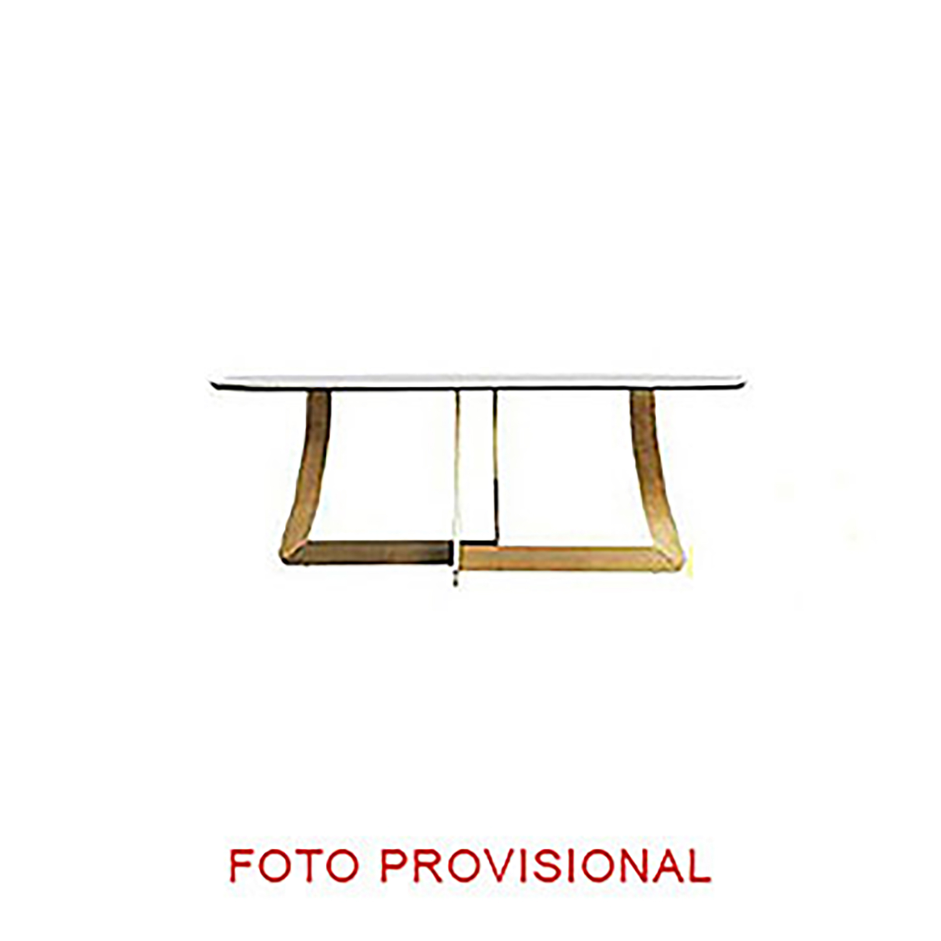 Mesa comedor fabricado en porcelánico en color blanco combinado con acero en color oro.