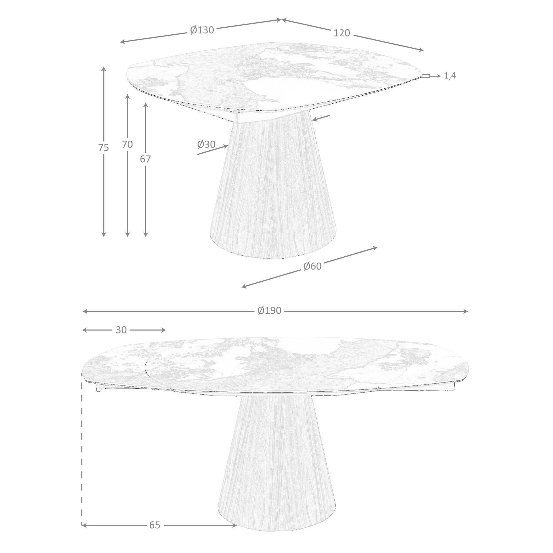 Mesa comedor extensible ovalada barril mármol porcelánico y nogal modelo 1187 Angel Cerdá S.L.Mesa comedor extensible ovalada barril de diseño moderno con tapa de mármol porcelánico blanco con vetas en tonos tierra en acabado brillo. Sus patas de madera chapada en nogal natural así como su adaptabilidad, la convierten en un mueble totalmente funcional y versátil para el día a día.Medidas del producto: Ø130 x 120 x 75 cm.Esta mesa comedor cuenta con 2 extensibles de 30 cm., pudiendo ampliarla de 130 a 190 cm.- Su tapa de mármol porcelánico es resistente y duradera, ofreciendo además un toque de vanguardia y elegancia al ambiente. – La originalidad de su estructura aúna modernidad y robustez, así como la mayor comodidad para sus comensales. – El perfil de la tapa pulido de esta mesa de comedor ofrece un acabado de alta calidad, siendo además, sinónimo de comodidad y elegancia. – El mecanismo extensible giratorio permite adaptar su tamaño y capacidad según las necesidades del usuario, convirtiéndola en una mesa de comedor totalmente práctica para el día a día. – Apta para un máximo de 8 comensales.