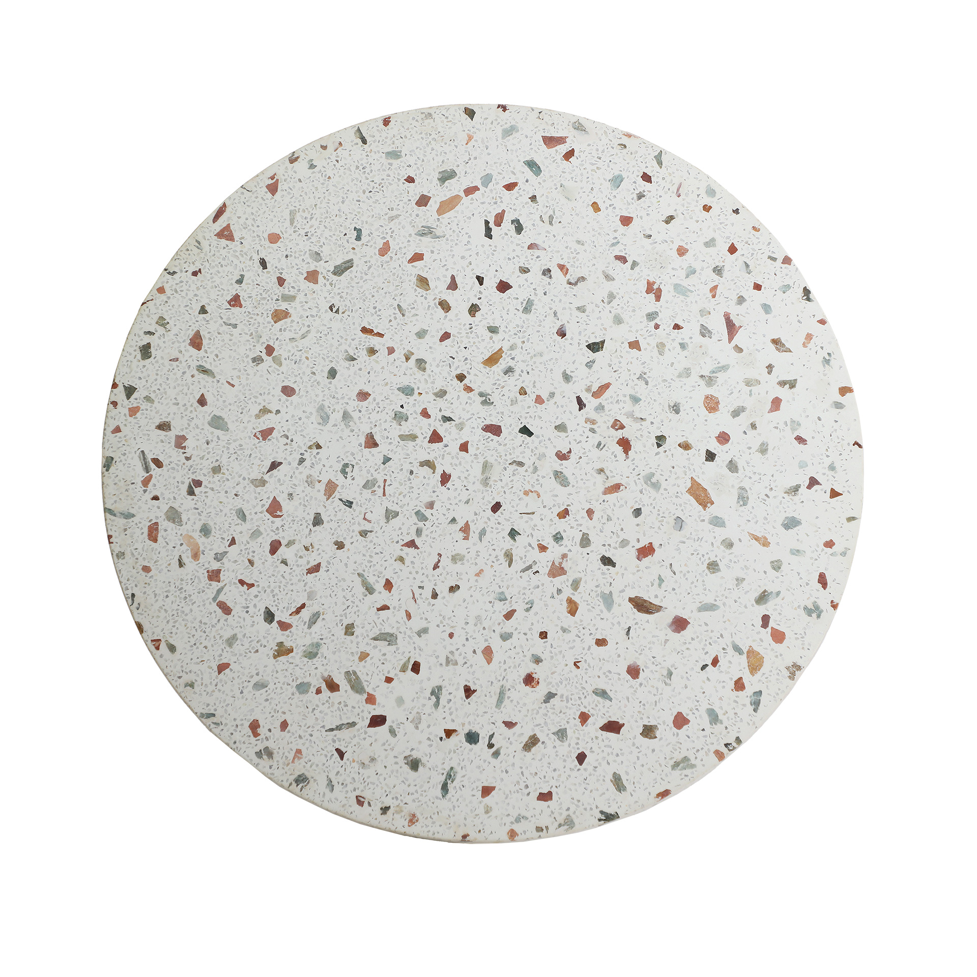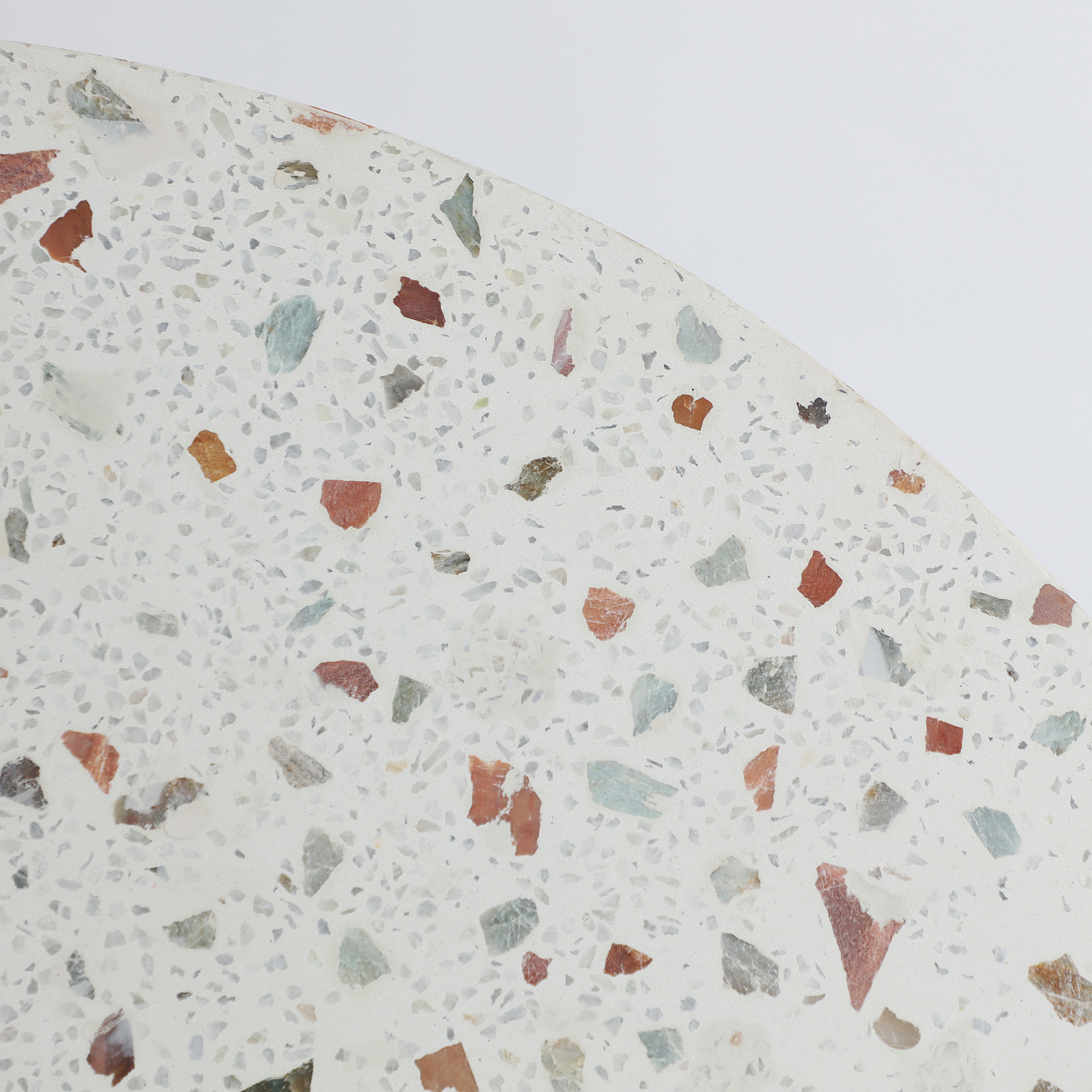 Mesa comedor Lautrec de estilo nórdico, fabricado en terrazo en color blanco, combinado con madera de mango en color marrón. Producto desmontable.
